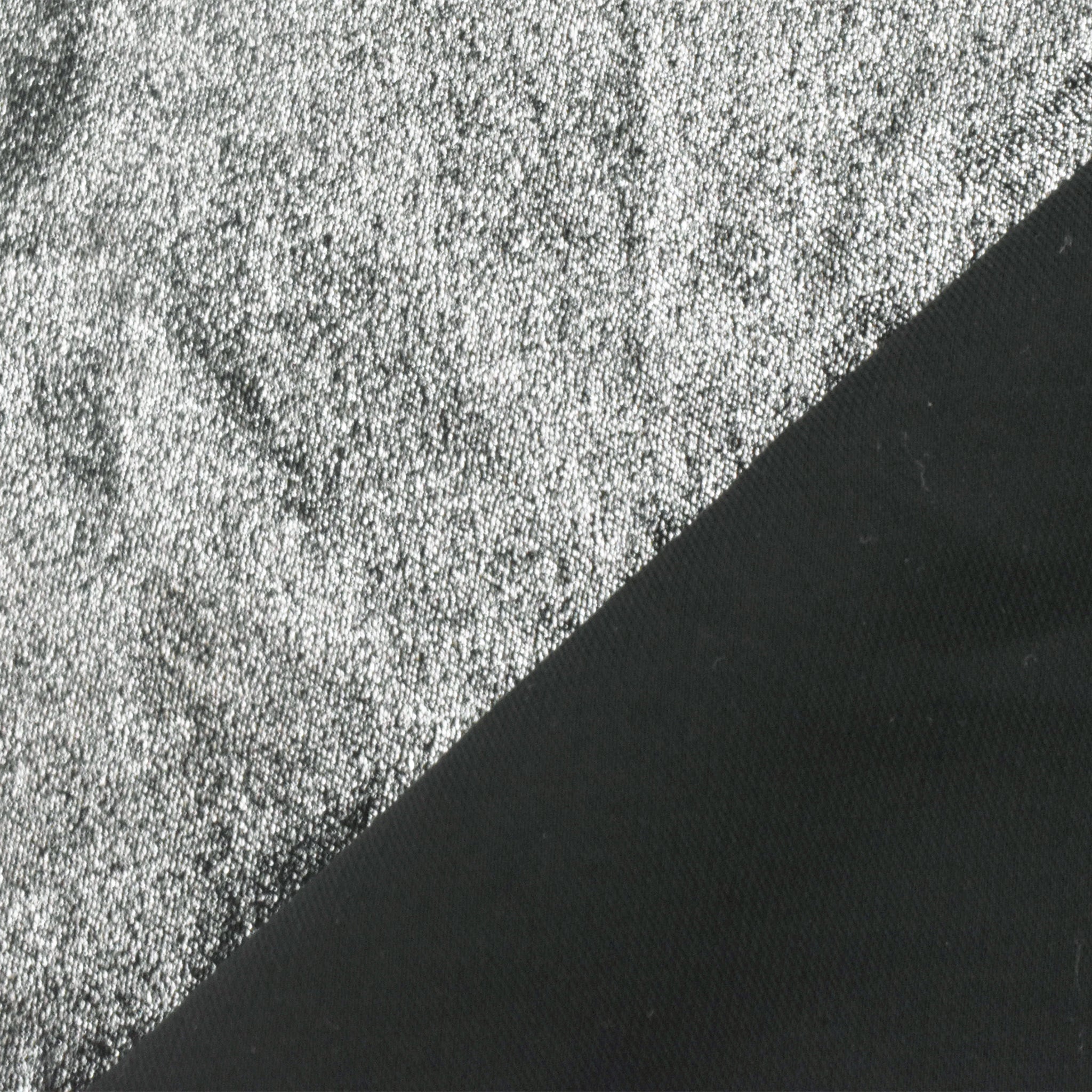 -Beautiful and light weight woven fabric printed with a crushed velvet-like textured look in metallic silver