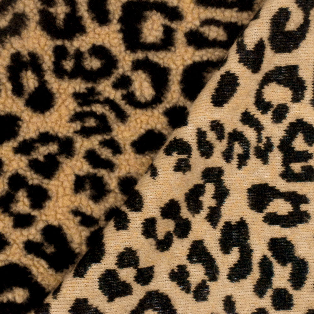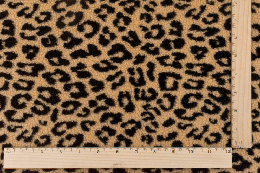 Beige-Black Famous Maker Leopard Sherpa Fleece Fabric