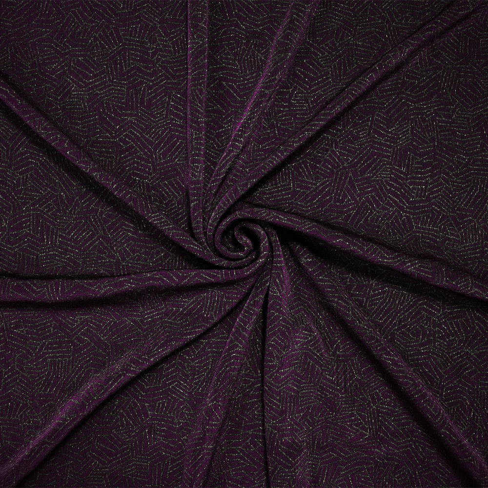 -Purple-Gold Acrylic Stretch Spandex Abstract Printed Slinky Knit Fabric