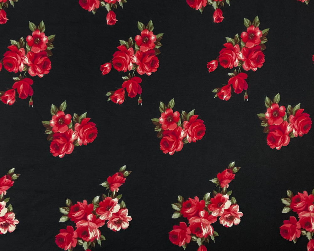 Black-Red Poly Stretch Floral Print DB Jersey Knit Fabric