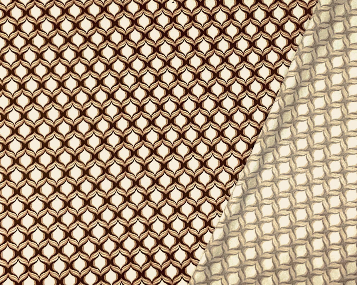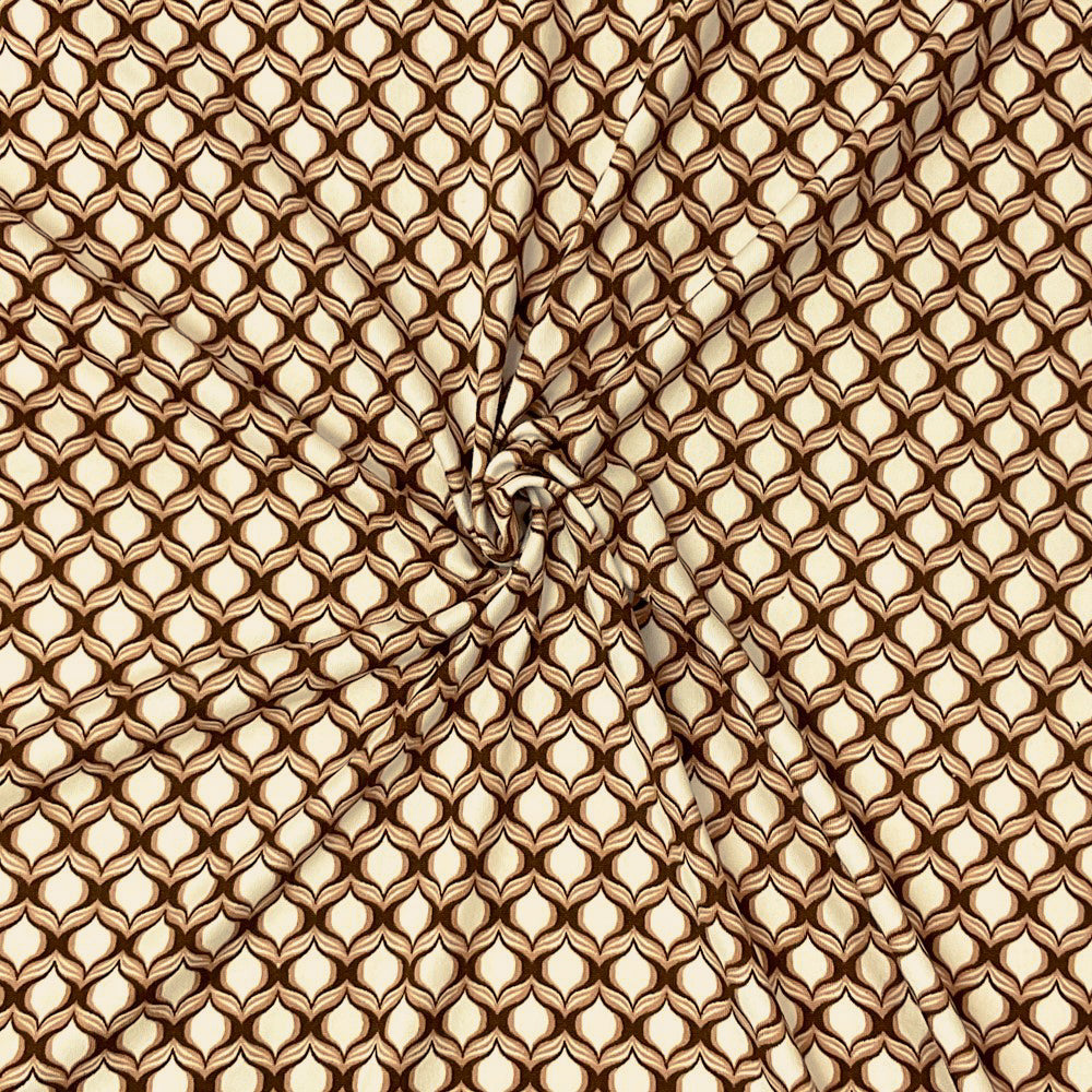 Brown-Multi Poly Spandex Stretch Abstract Ogee Print DB Jersey Knit Fabric