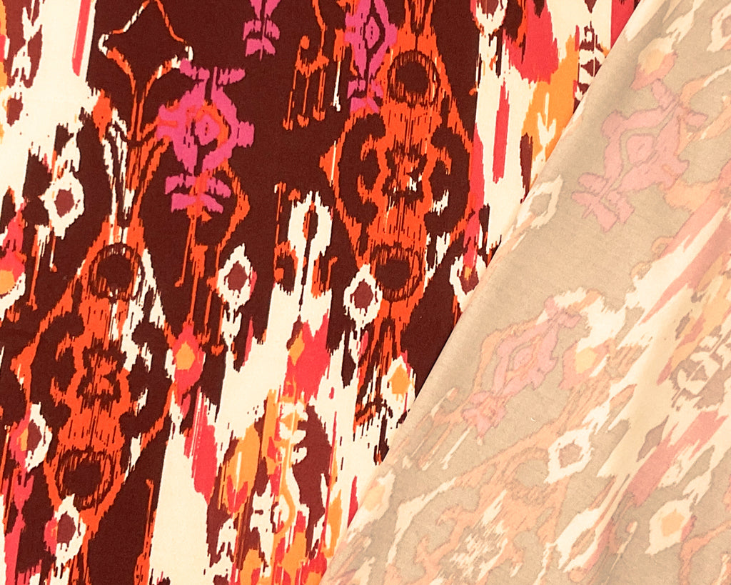 Brown-Multi Poly Spandex Stretch Abstract Print DB Jersey Knit Fabric