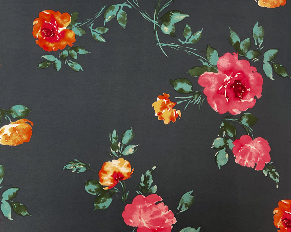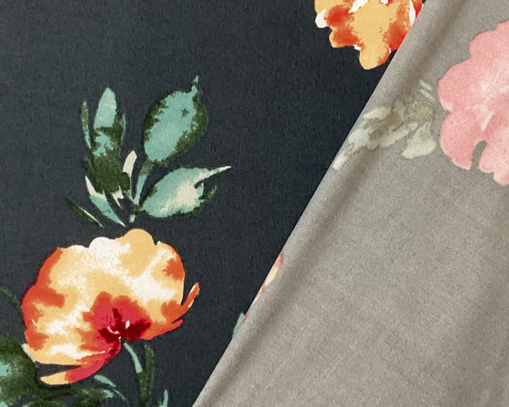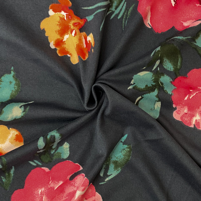 Dark Gray-Multi Poly Stretch Floral Print DB Jersey Knit Fabric