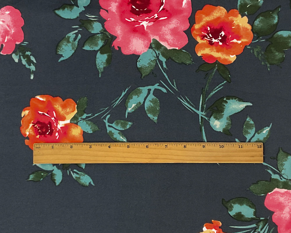 -Poly Spandex Stretch Floral Print Double Brush Jersey Knit Fabric