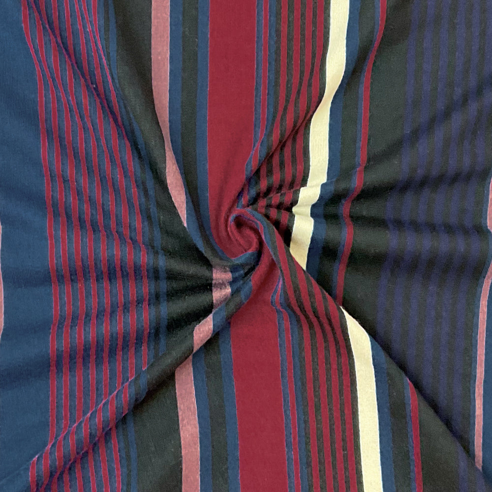 Red-Multi Poly Spandex Stretch Vertical Stripe Print DB Jersey Knit Fabric