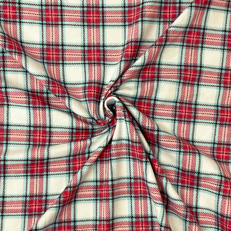 -Poly Spandex Stretch Plaid-Check Print Double Brush Jersey Knit Fabric