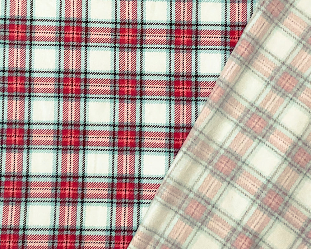 Red-Multi Poly Stretch Plaid-Check Print DB Jersey Knit Fabric