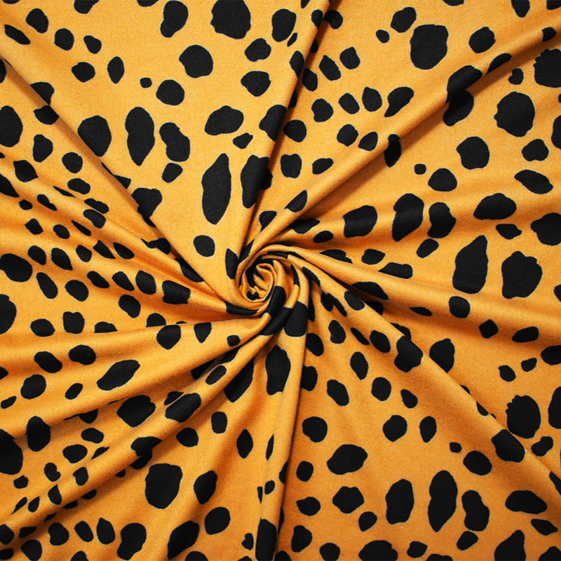-Yellow-Black Poly Spandex Stretch Cheetah Print Double Brush Jersey Knit Fabric