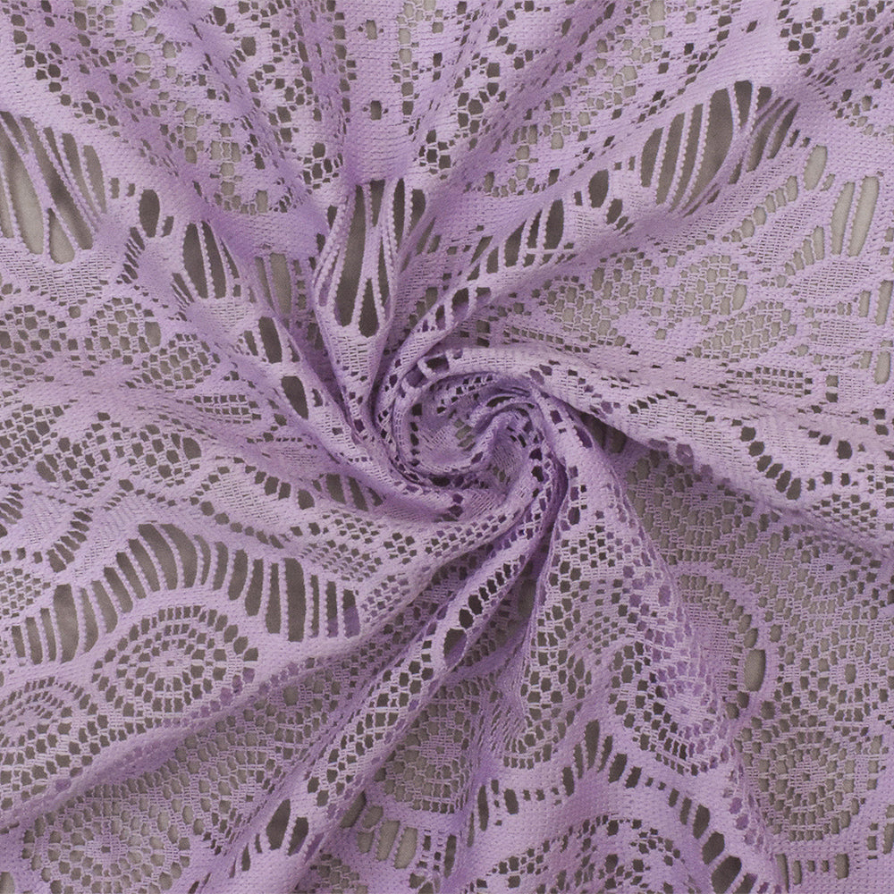 Spa Lavender Purple Medallion Floral Nylon-Cotton Lace Knit Fabric