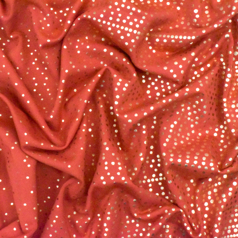 Sunset Red-Gold Dot Printed Stretch Tricot Swimwear Knit Fabric