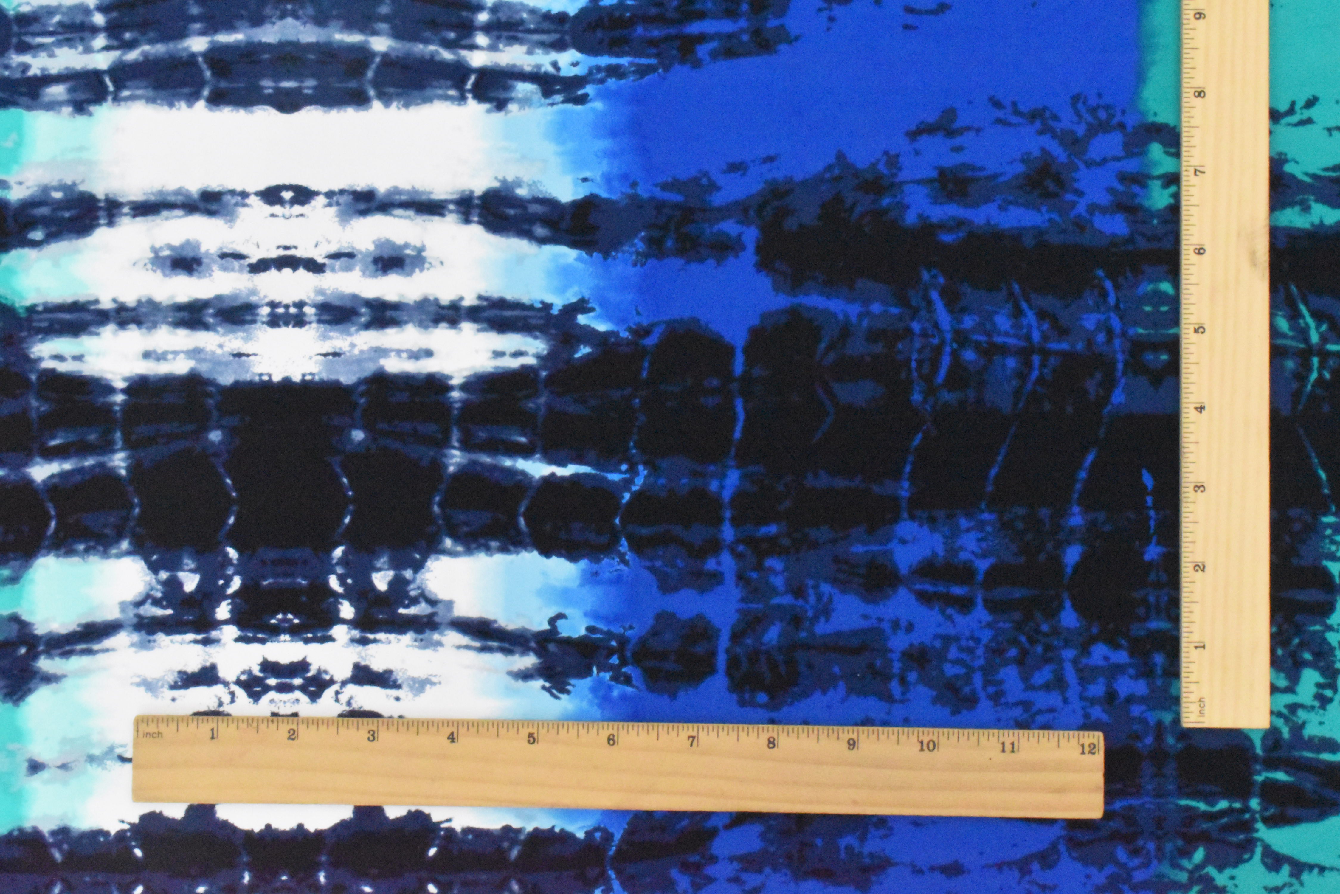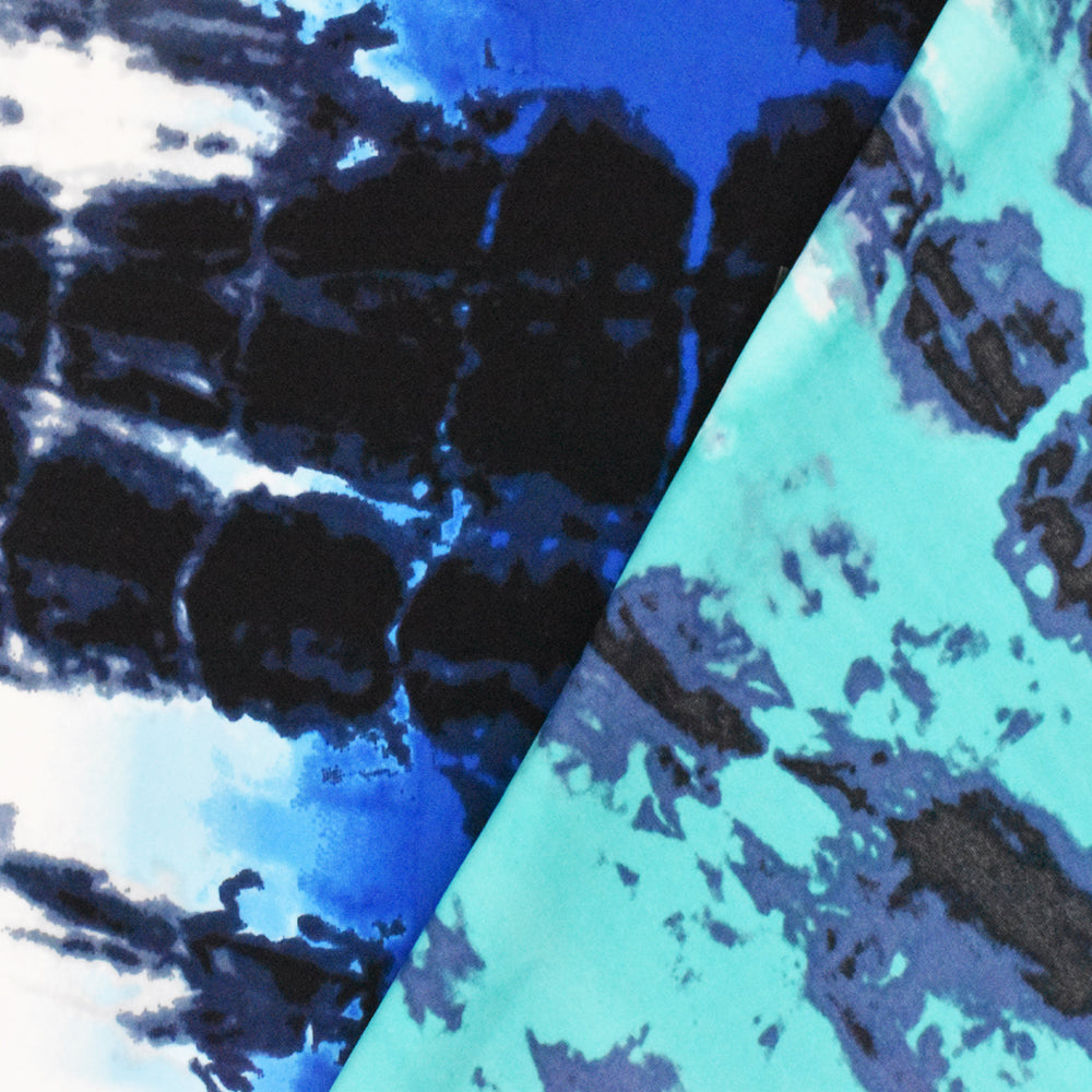 Turquoise-Navy Abstract Tie Dye Printed Swimwear Stretch Tricot Fabric
