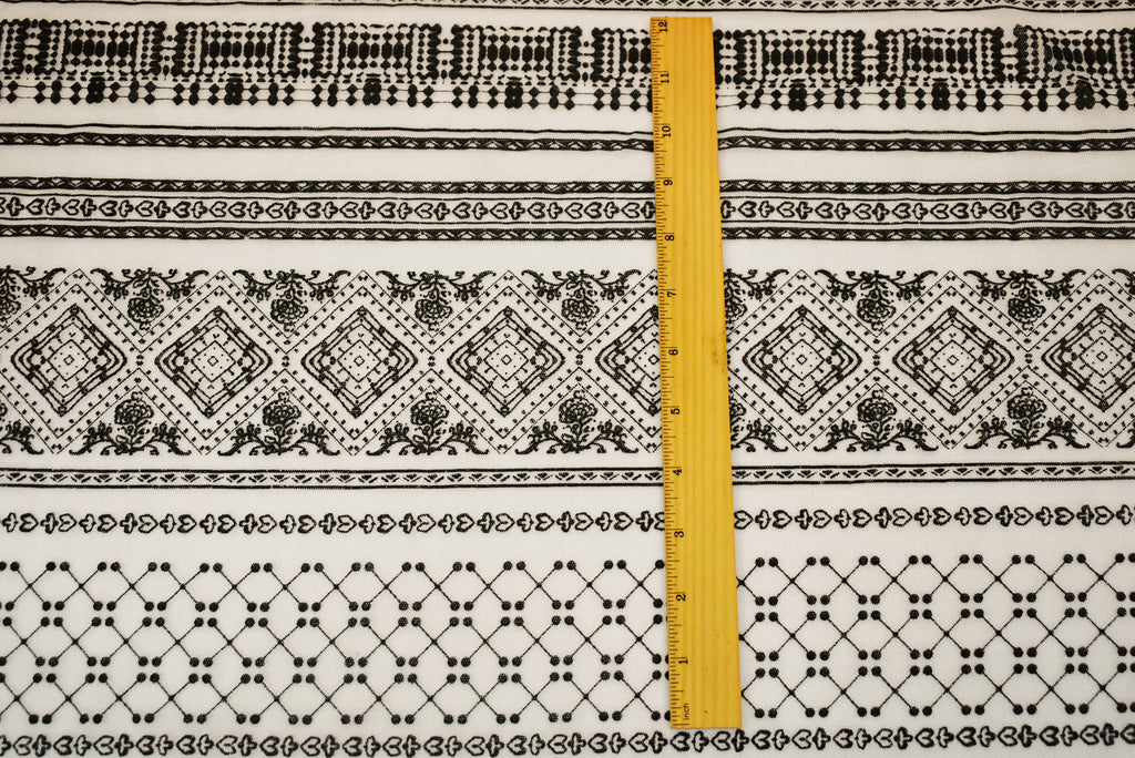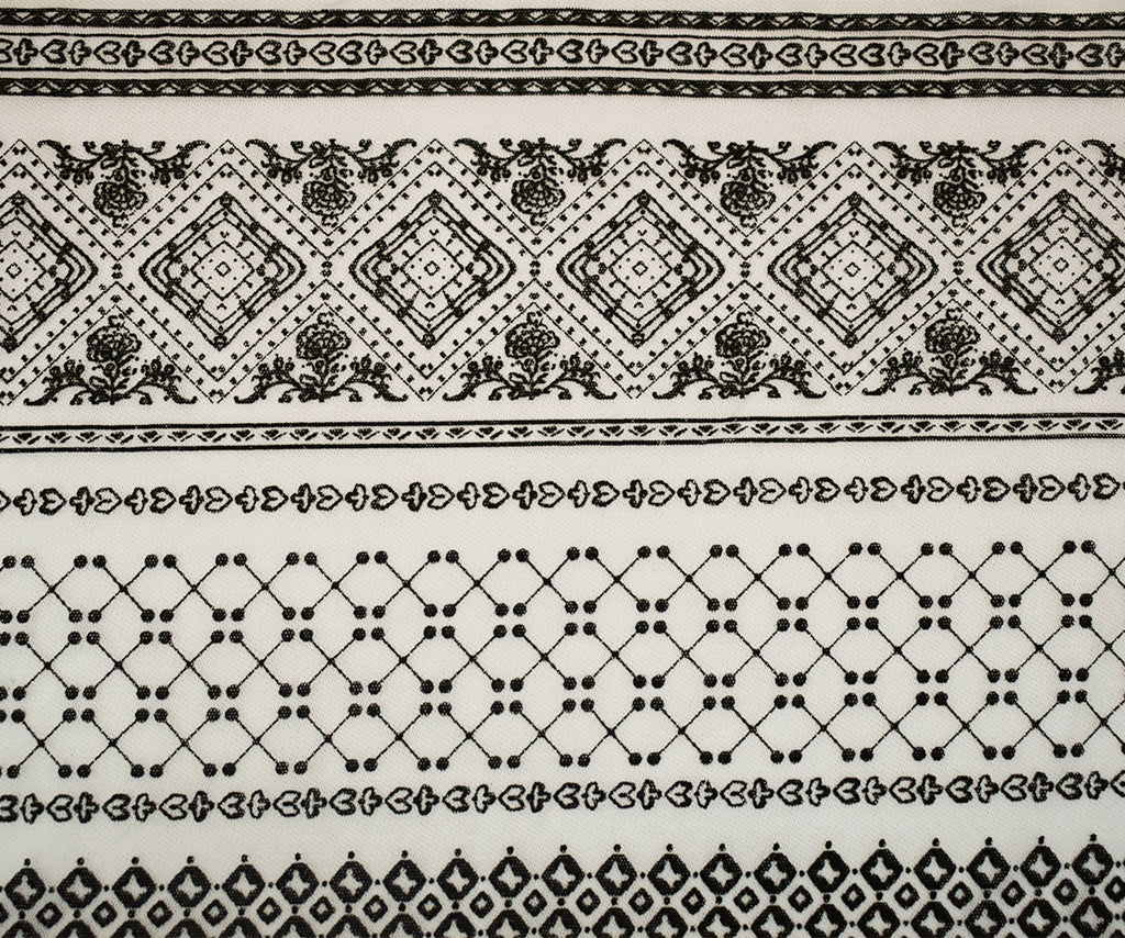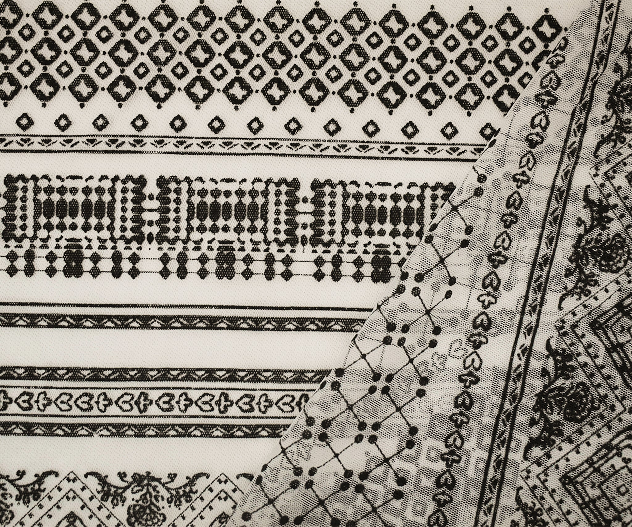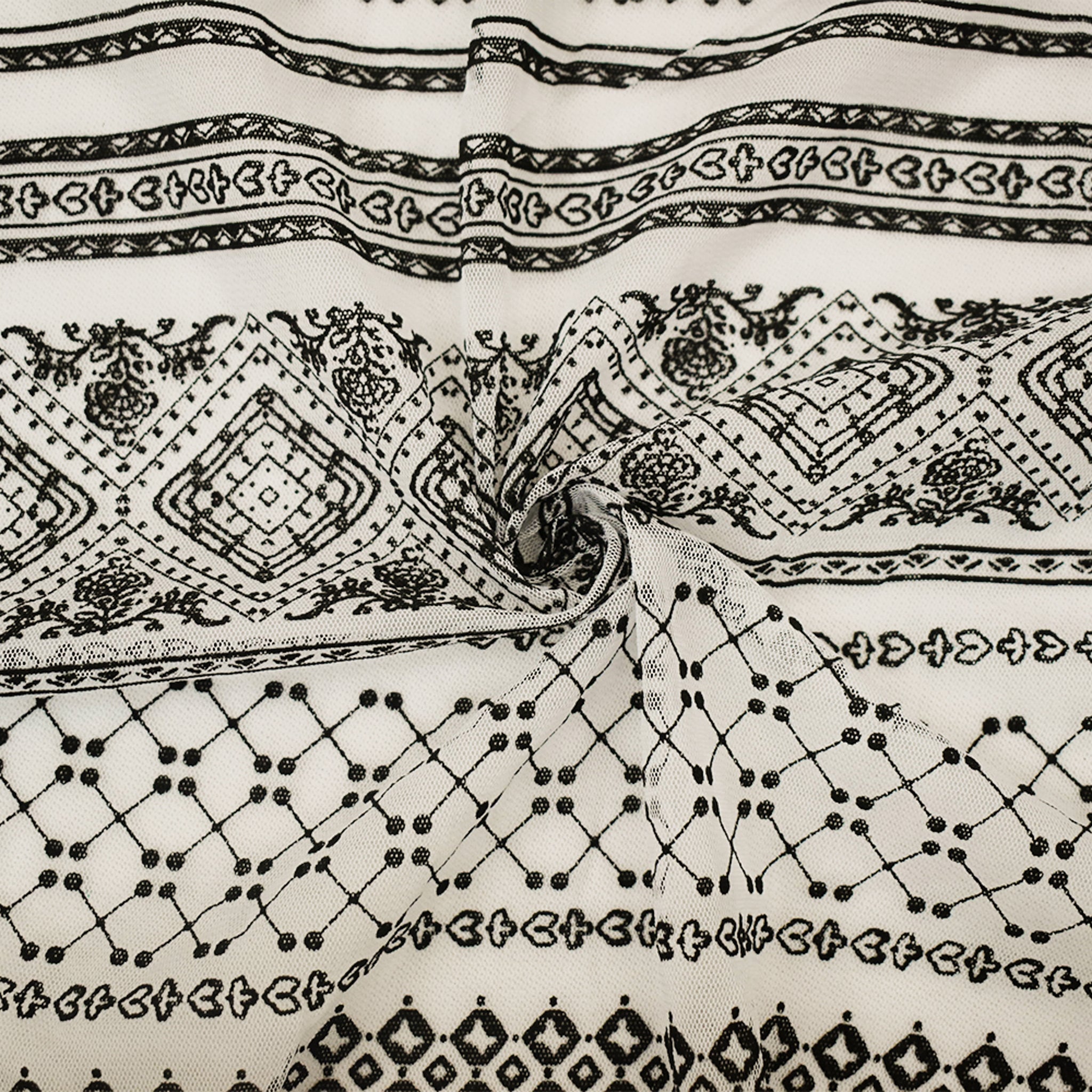 White-Black Nylon Diamond Multi Printed Tulle Mesh Knit Fabric