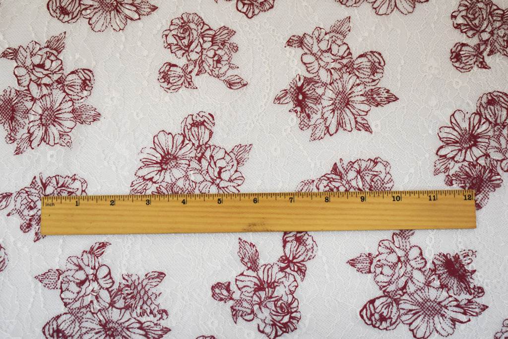 White-Deep Red Nylon Floral Printed Lace Mesh Knit Fabric