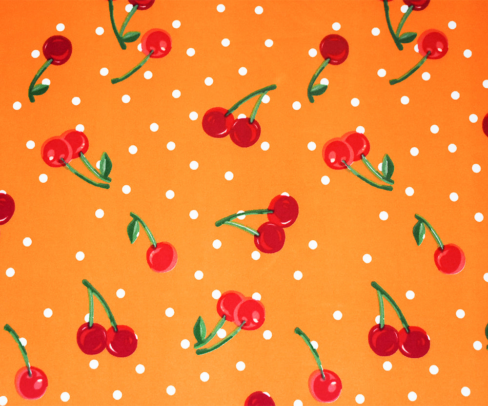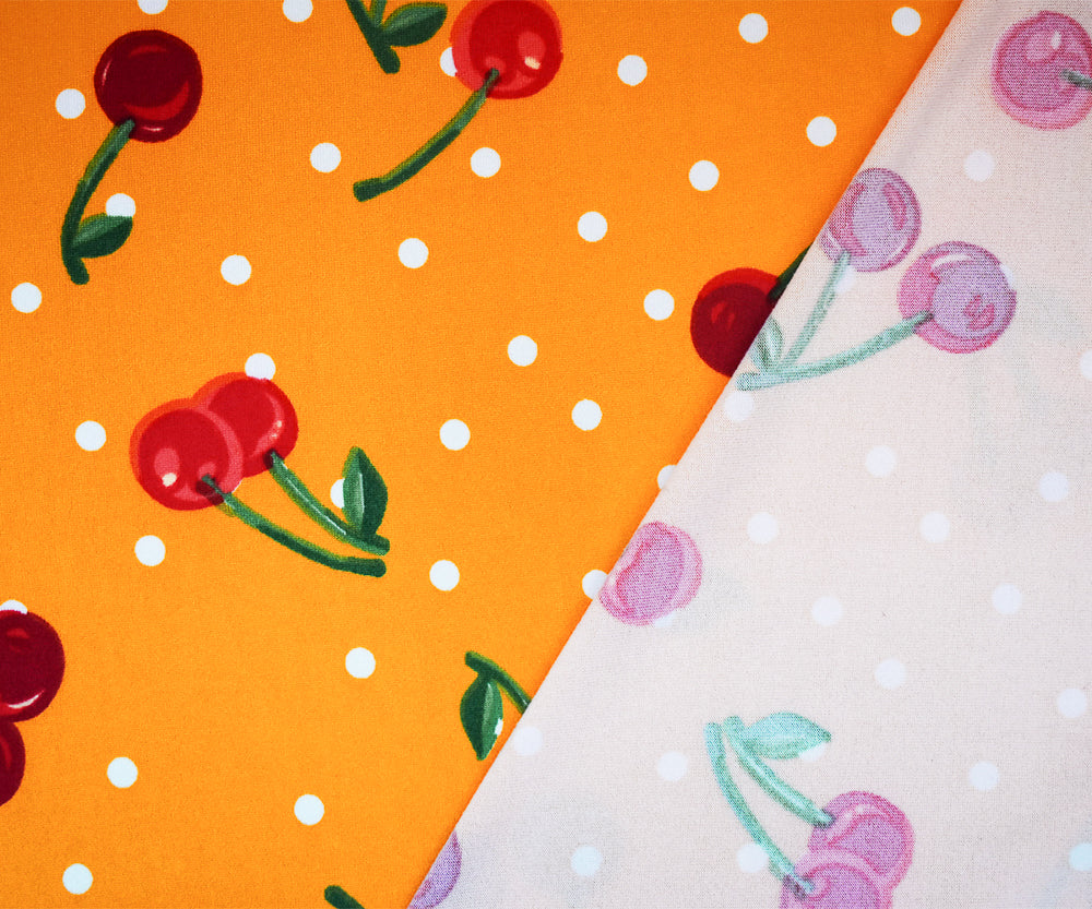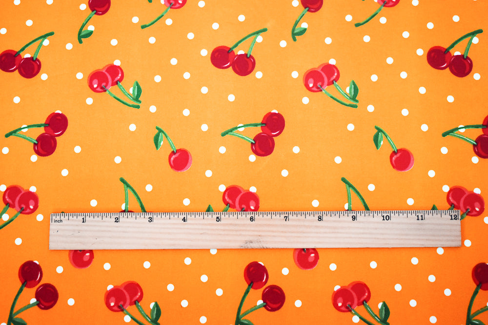 Yellow-Red Cherry Dot Printed Poly Stretch Double Brush Jersey Knit Fabric