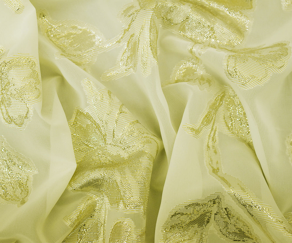 Yellow-Silver-Gold Nylon Blend Metallic Floral Organza Woven Fabric