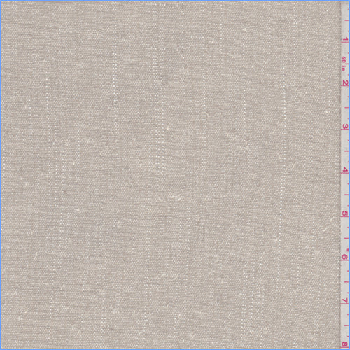 Oatmeal beige with ivory and opalescent accent threads. A lightweight fabric with vertical slubbing and dry hand/feel. This wool and polyester blend suiting drapes in folds and has a slight widthwise stretch. Semi sheer. Can be used for lined suits, slacks and dresses. Hand wash or dry clean.