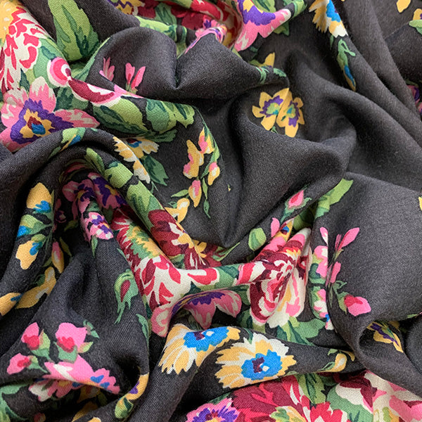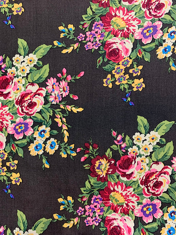 Brown Multi Rose Floral Print Rayon Challis Fabric