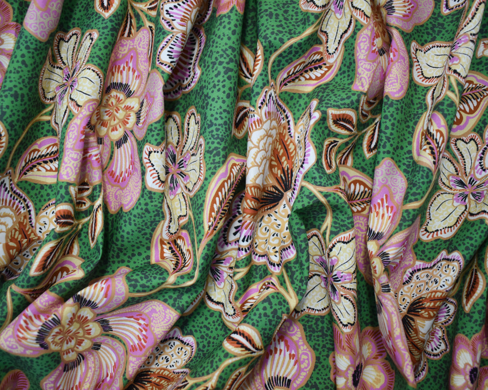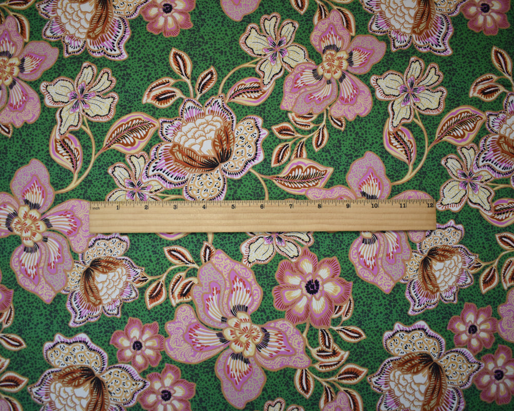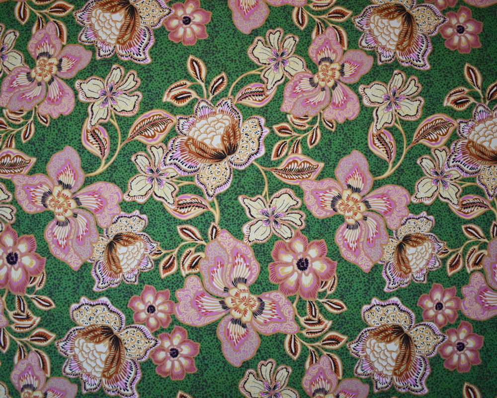 Green-Pink-Multi Cotton Floral Printed Broadcloth Woven Fabric