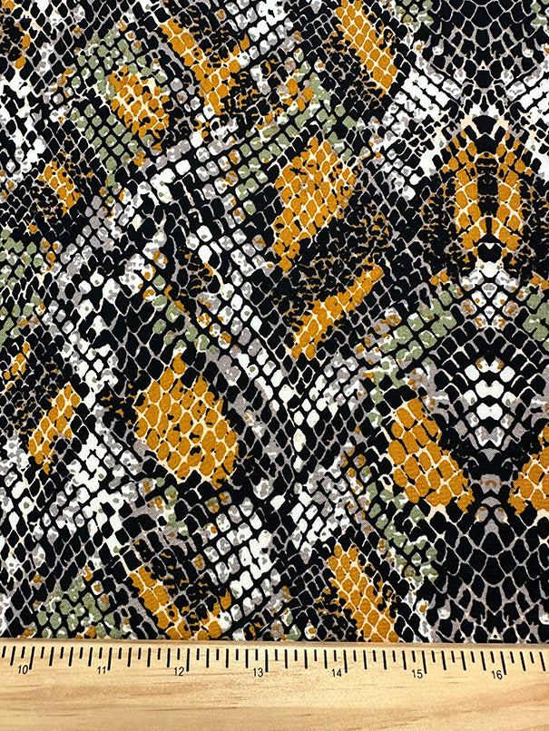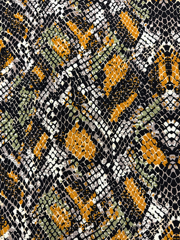 Dark Gold Paisley Print Poly Crepe de Chine Fabric