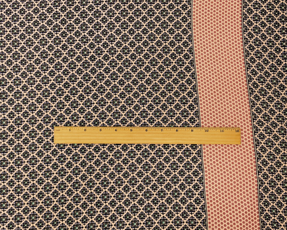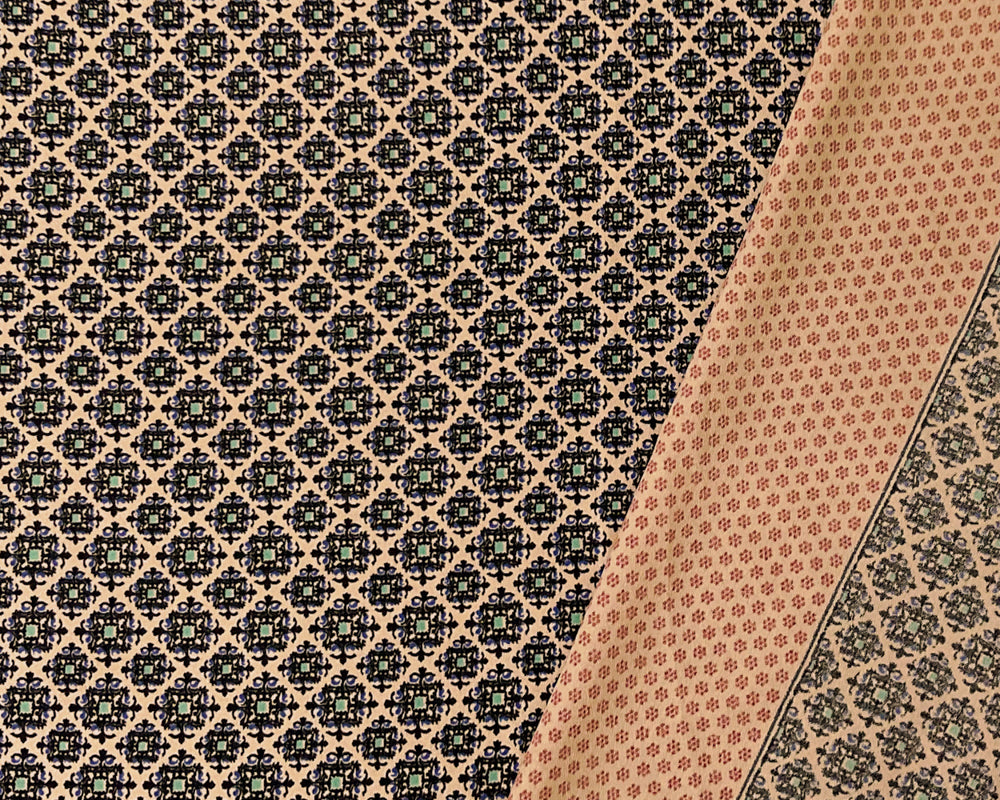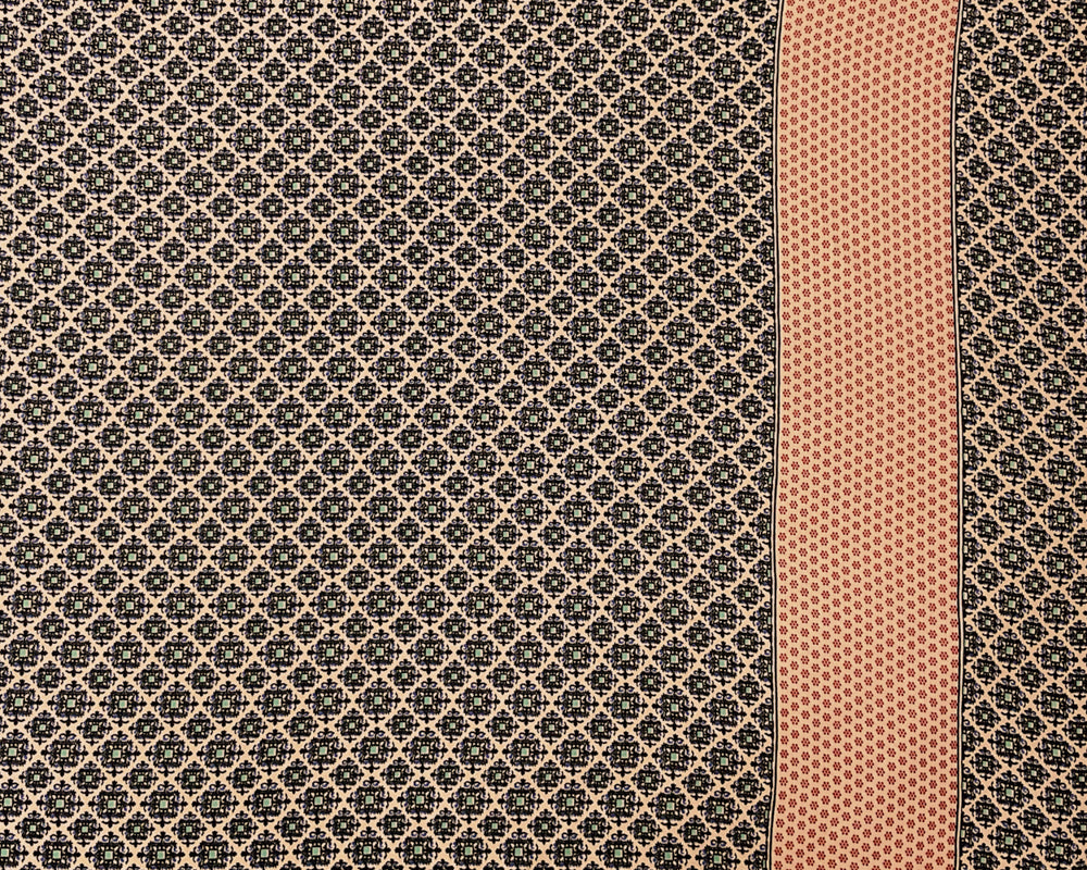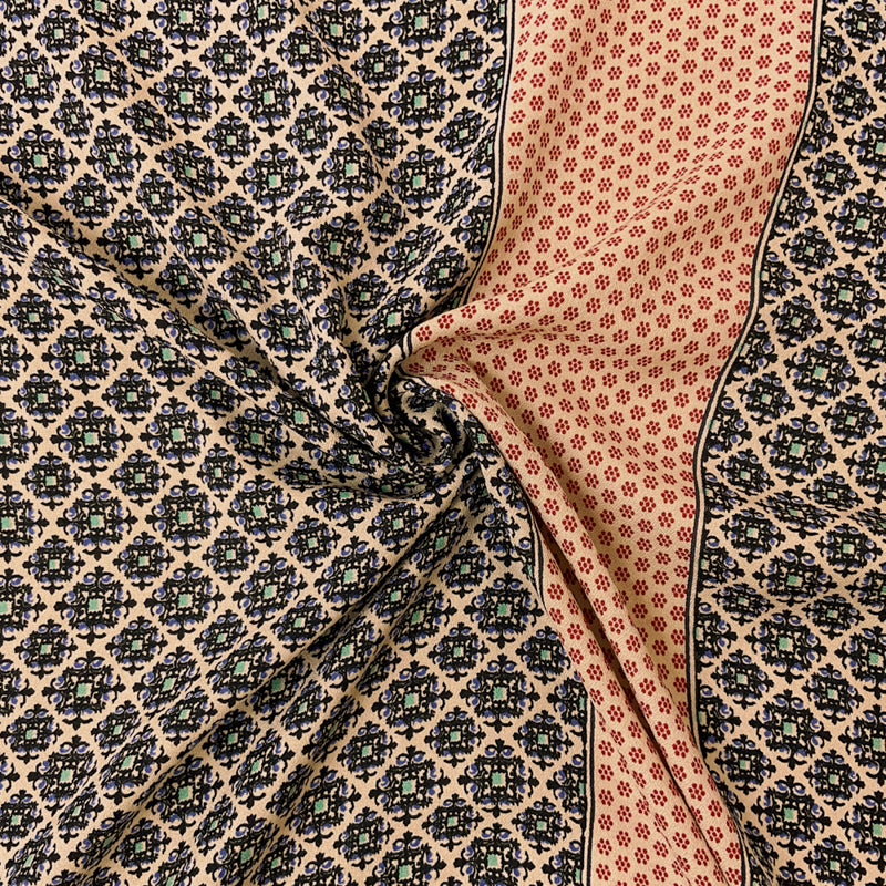 Beige-Multi Poly Rayon Moroccan Border Print Crepe Woven Fabric