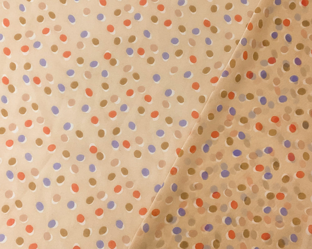 Beige-Purple-Multi Poly Dot Printed Chiffon Woven Fabric