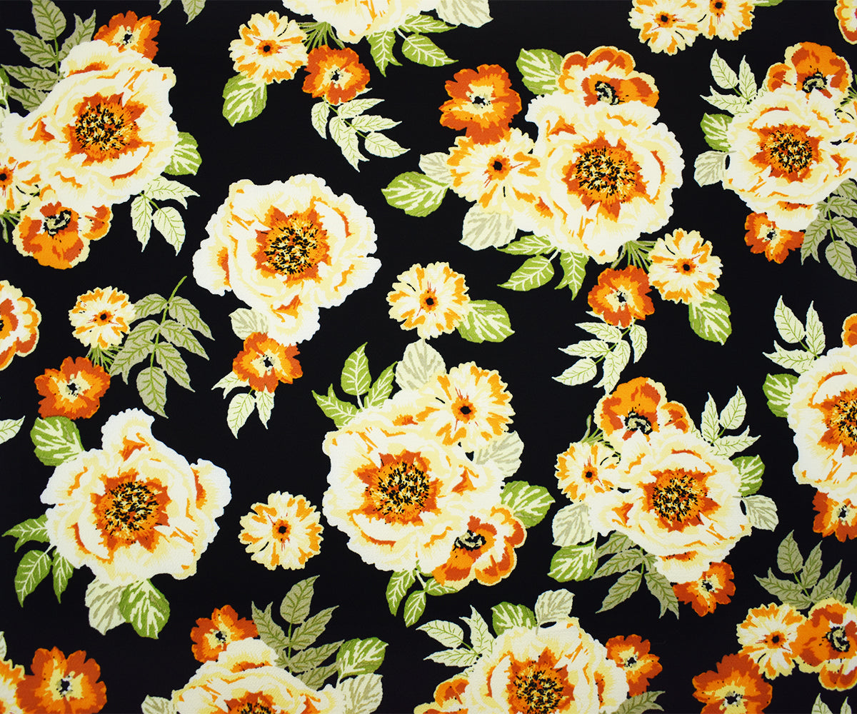 Black-Multi Poly Floral Border Printed Crepe Momie Georgette Woven Fabric