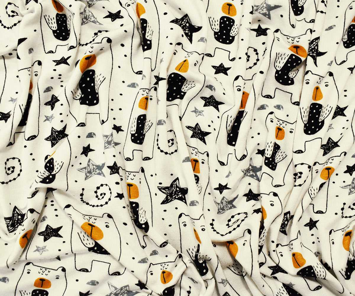 Black-Multi Rayon Modal Bear Star Print Stretch Spandex Jersey Knit Fabric