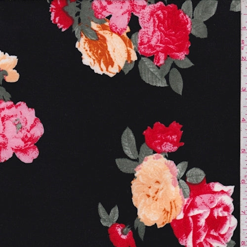 Black Multi Rose Cluster Double Brushed Jersey Knit Fabric
