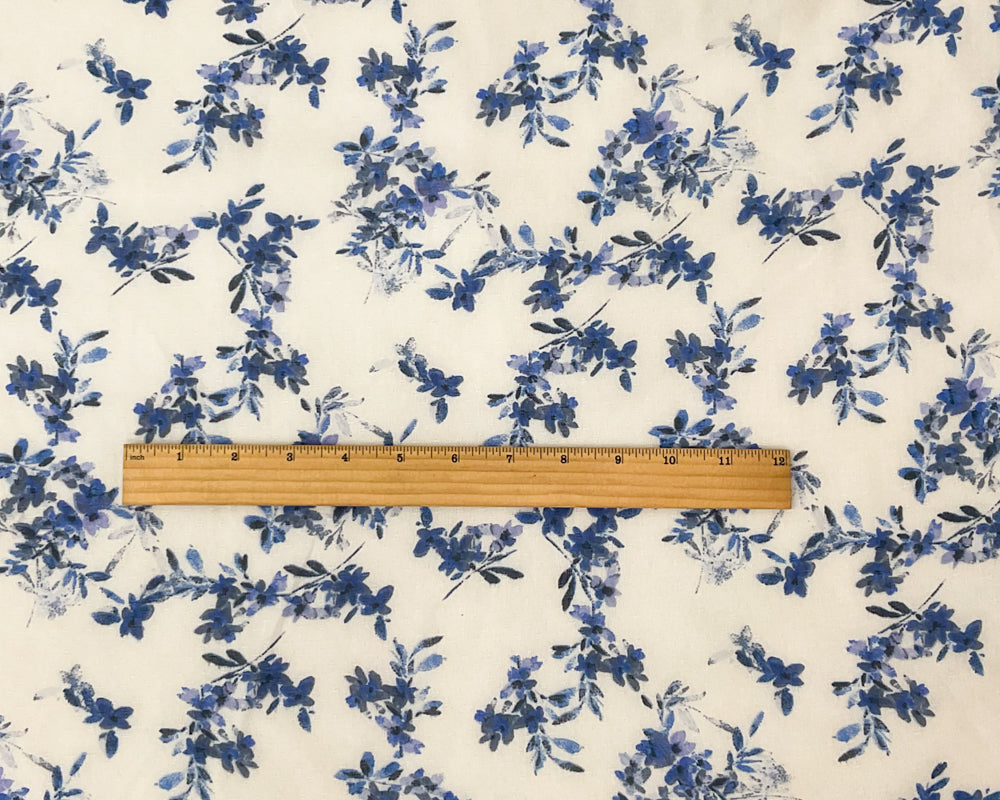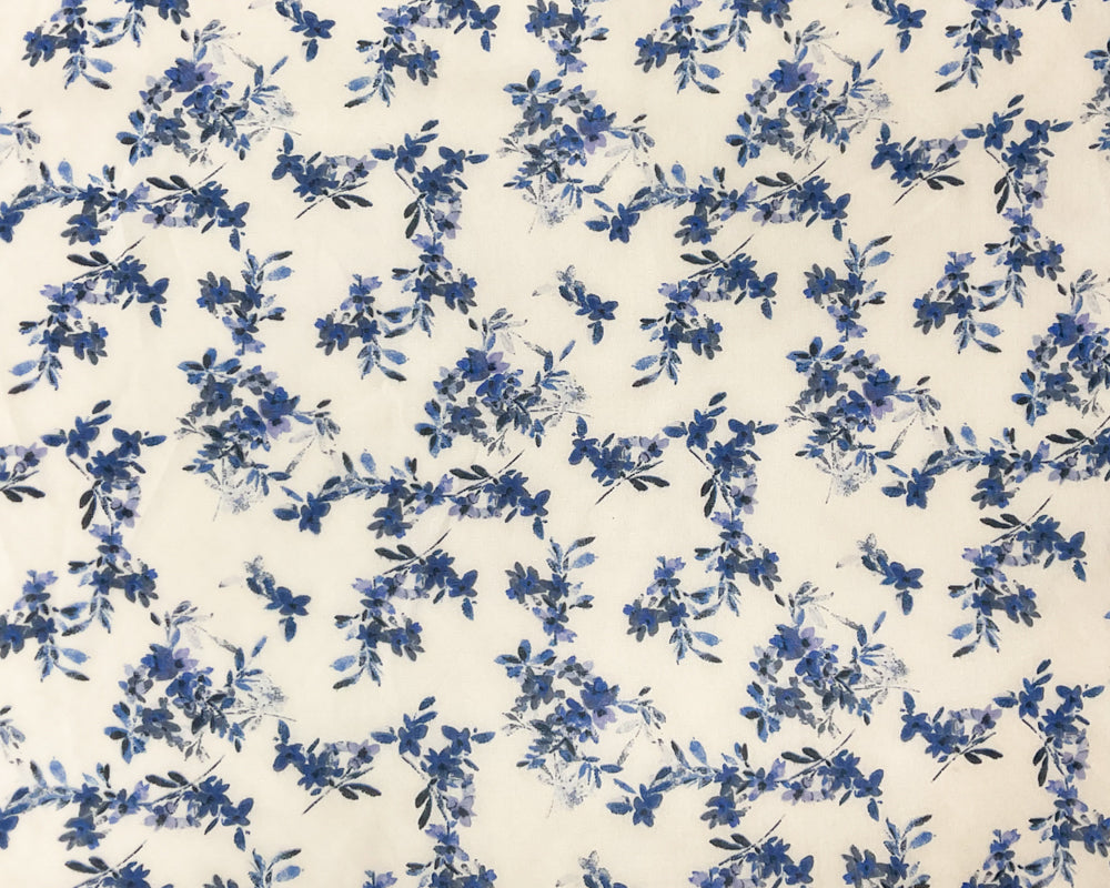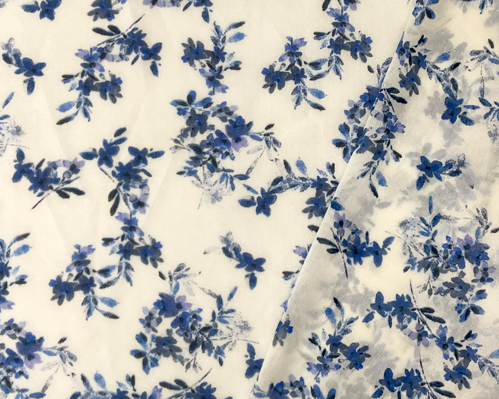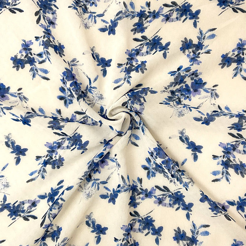 Blue-Ivory Poly Floral Printed Dobby Chiffon Woven Fabric