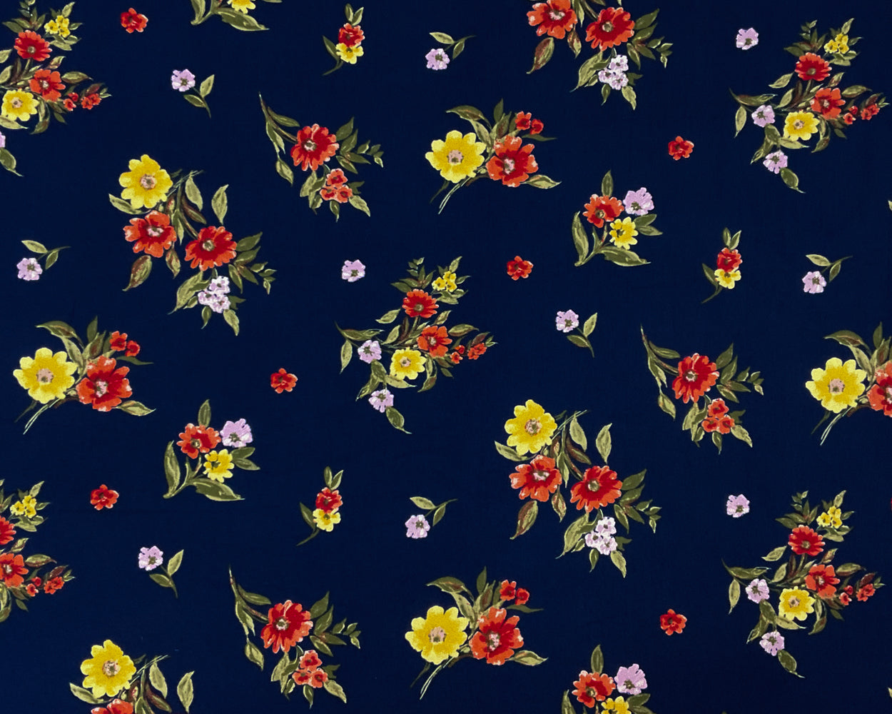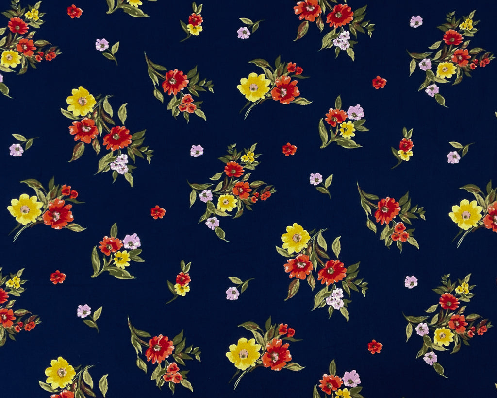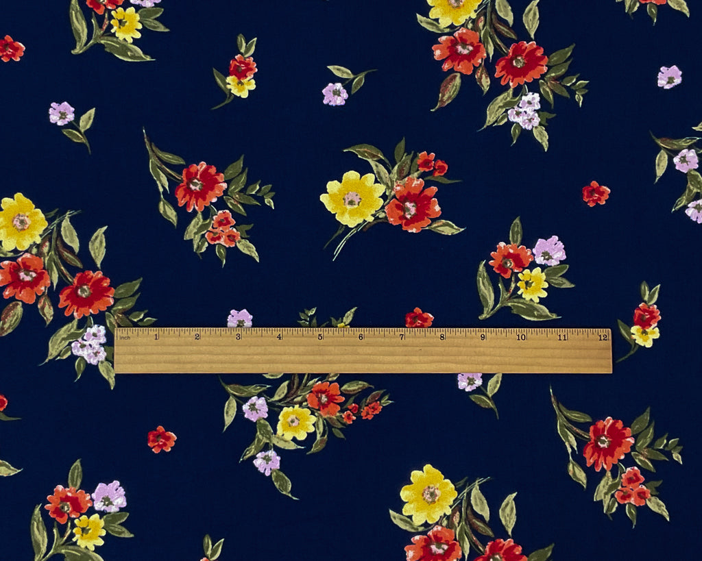 Blue-Multi Poly Spandex Stretch Floral Print DB Jersey Knit Fabric