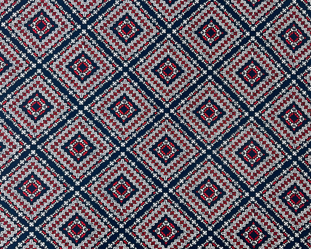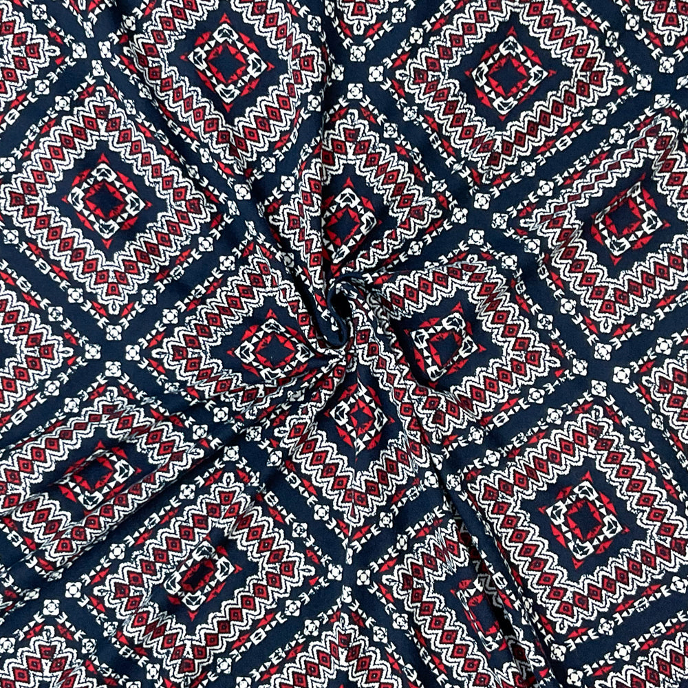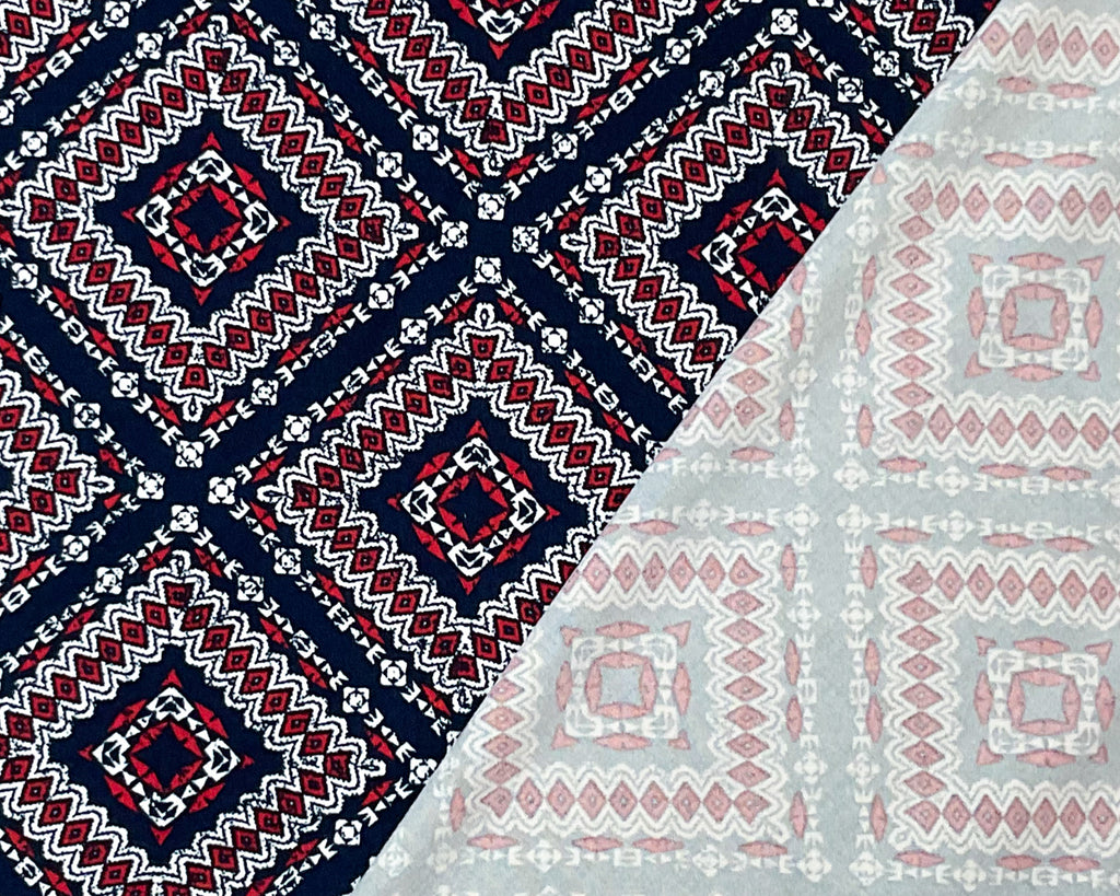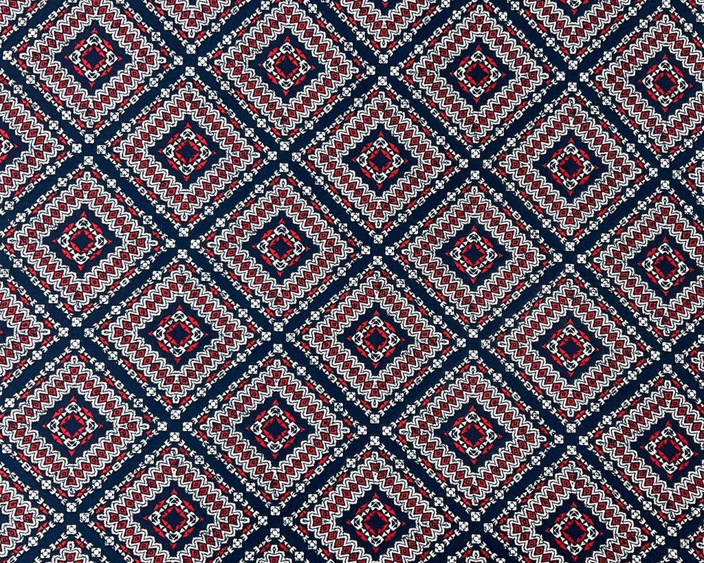 Blue-Multi Poly Stretch Spandex Aztec Diamond Print DB Jersey Knit Fabric