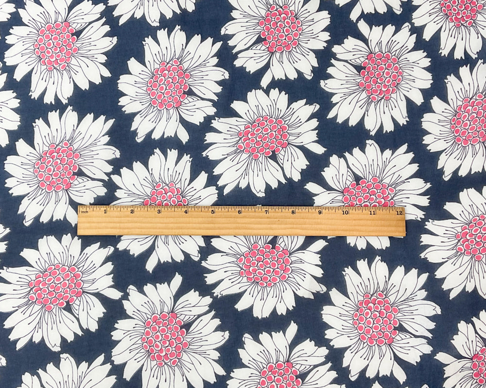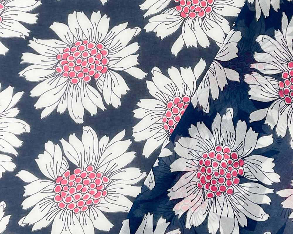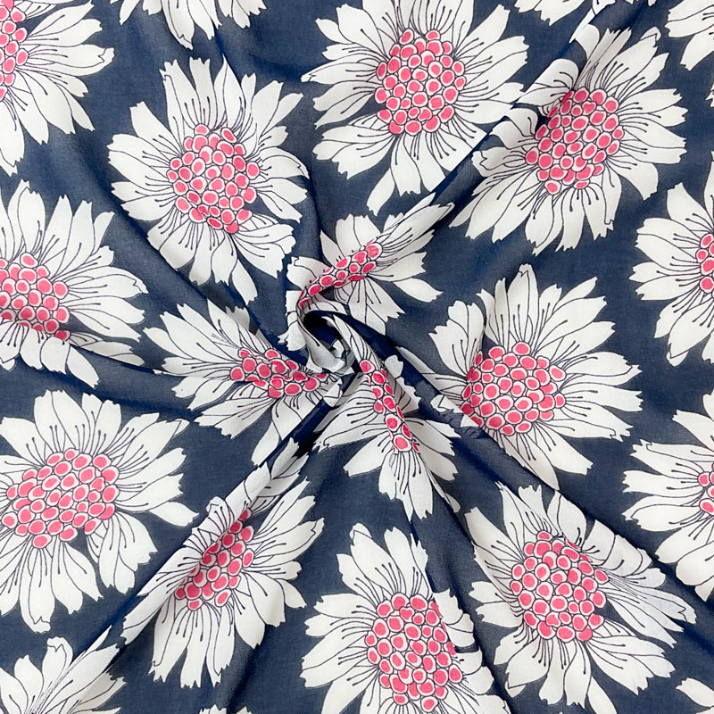 Blue-White-Multi Poly Floral Printed Chiffon Woven Fabric
