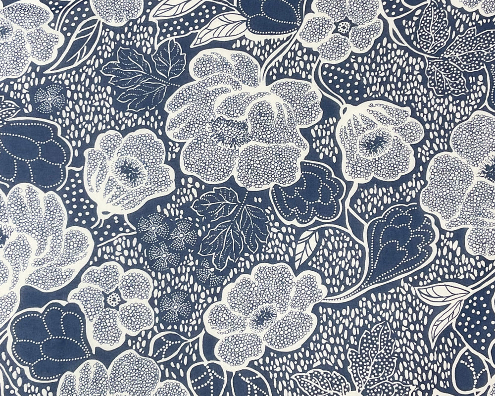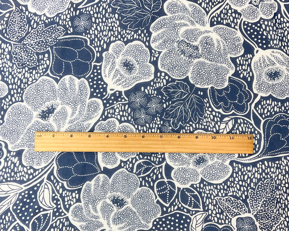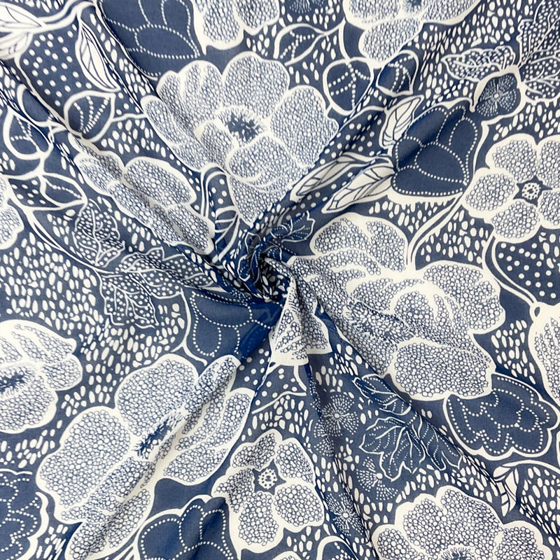 Blue-White Poly Floral Printed Chiffon Woven Fabric