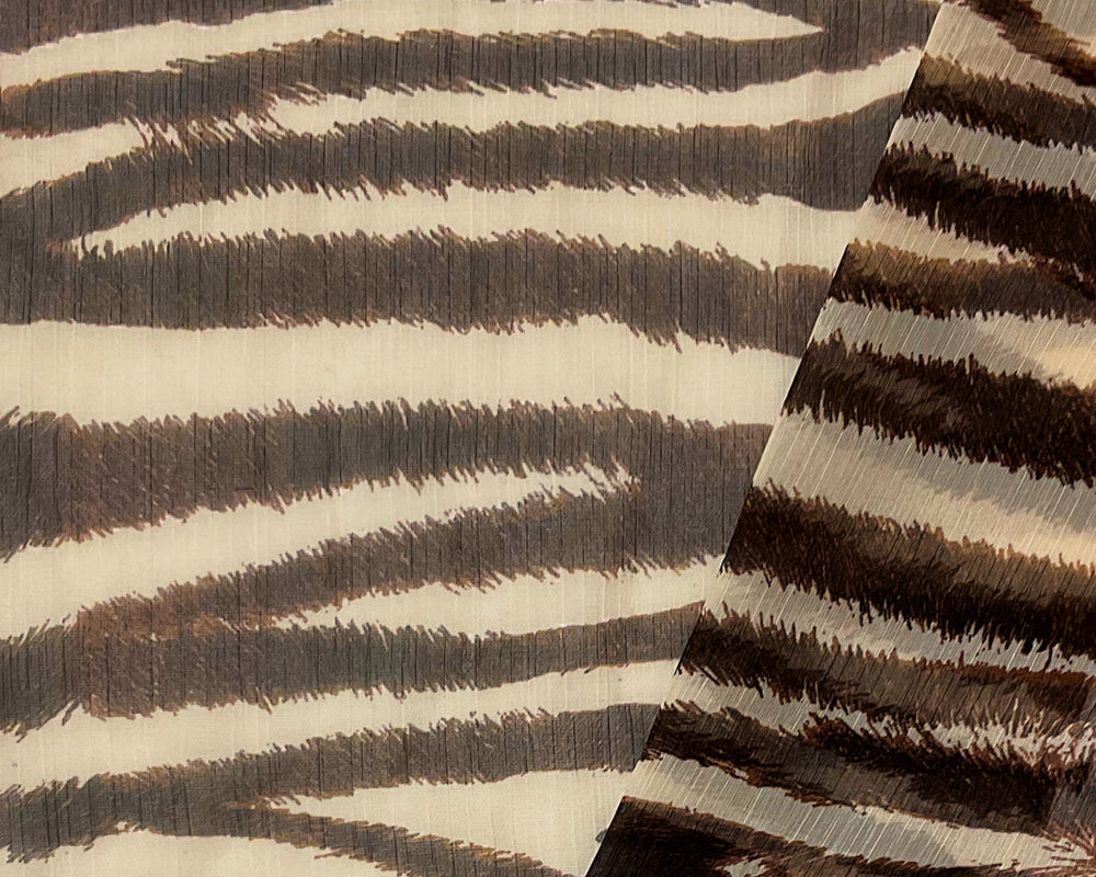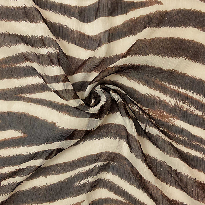 Beige-Brown Poly Zebra Printed Yoryu Chiffon Woven Fabric