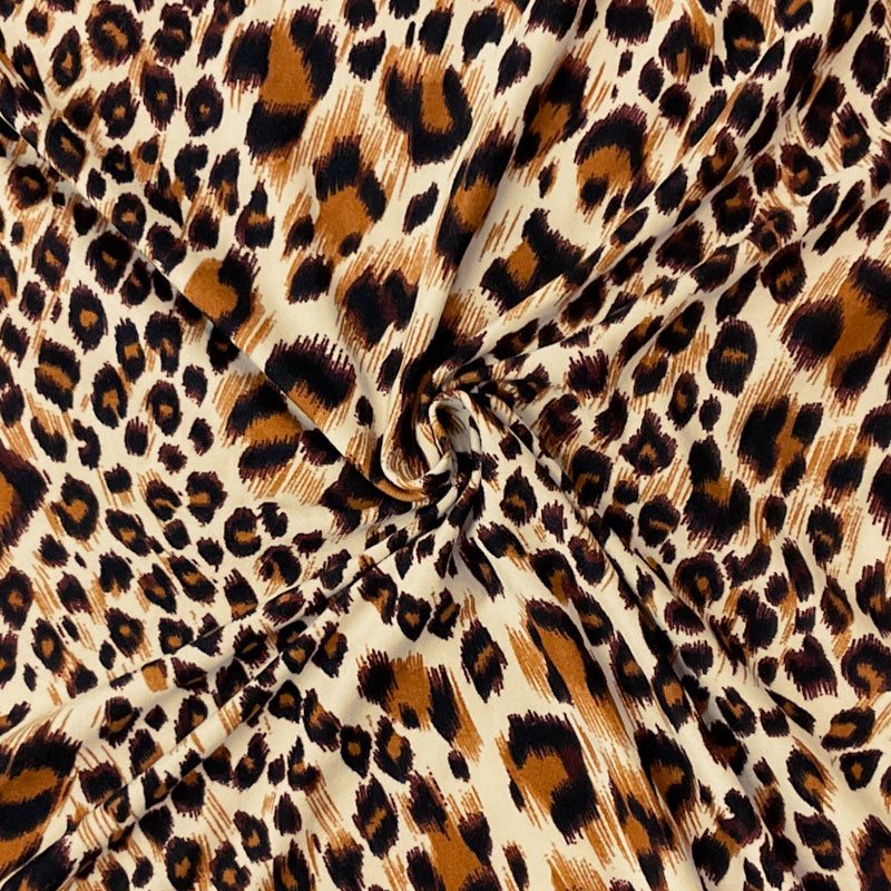 Brown-Multi Poly Stretch Leopard Print DB Jersey Knit Fabric