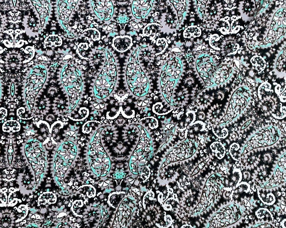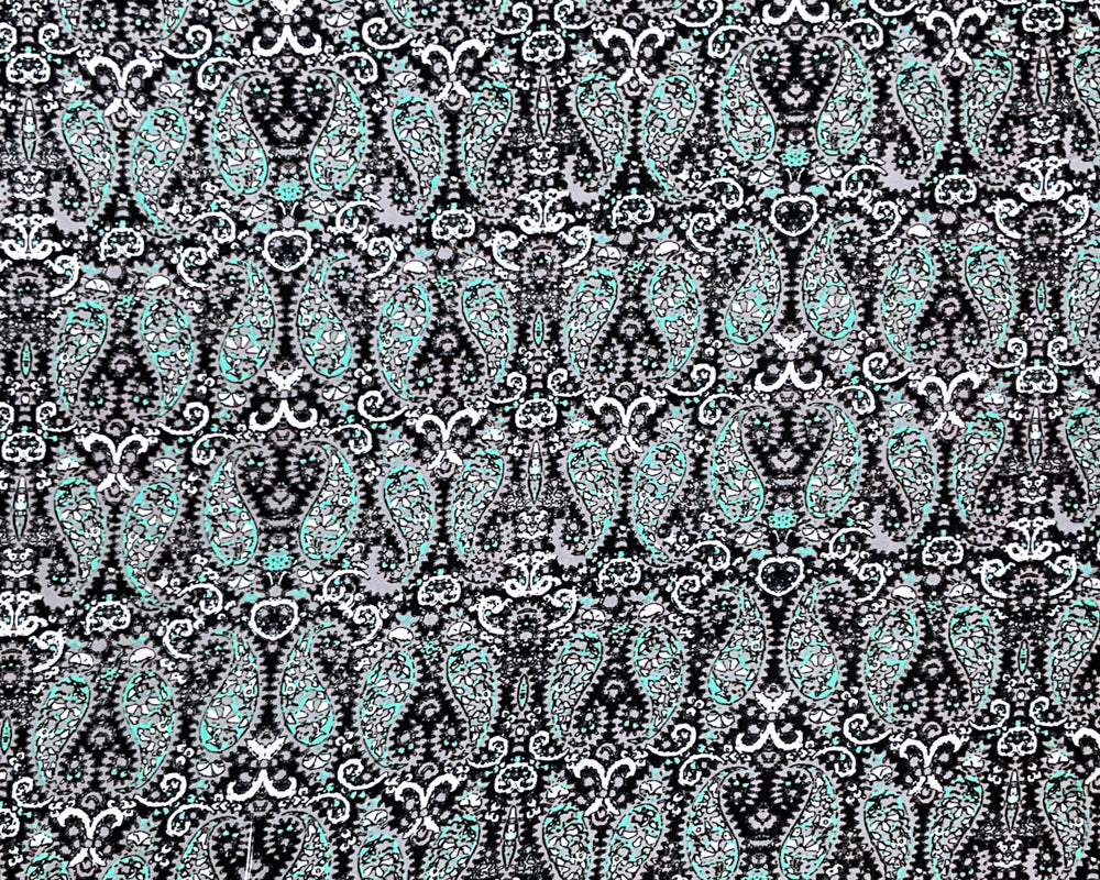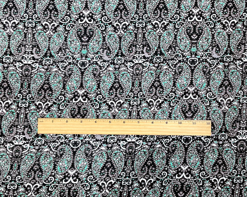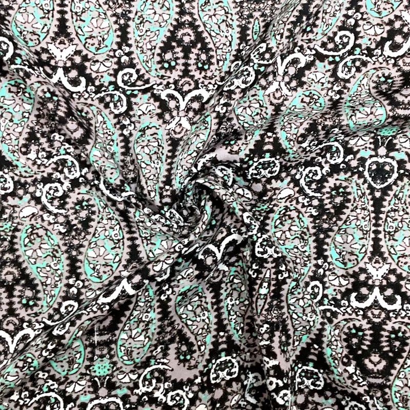 Black-Gray-Multi Rayon Paisley Printed Challis Woven Fabric