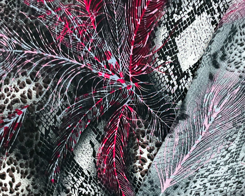 Black-Red-Multi Rayon Animal Printed Challis Woven Fabric