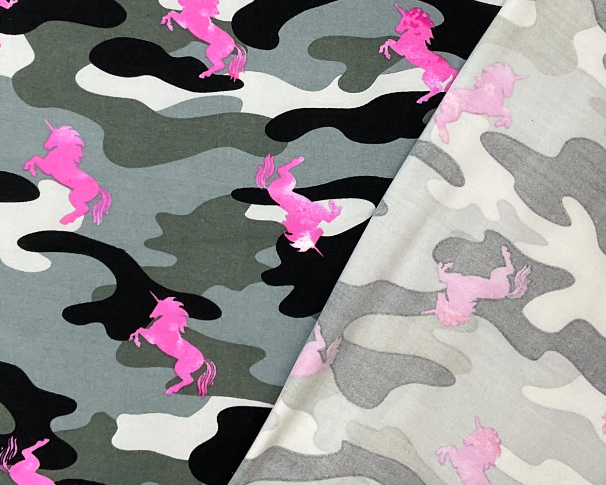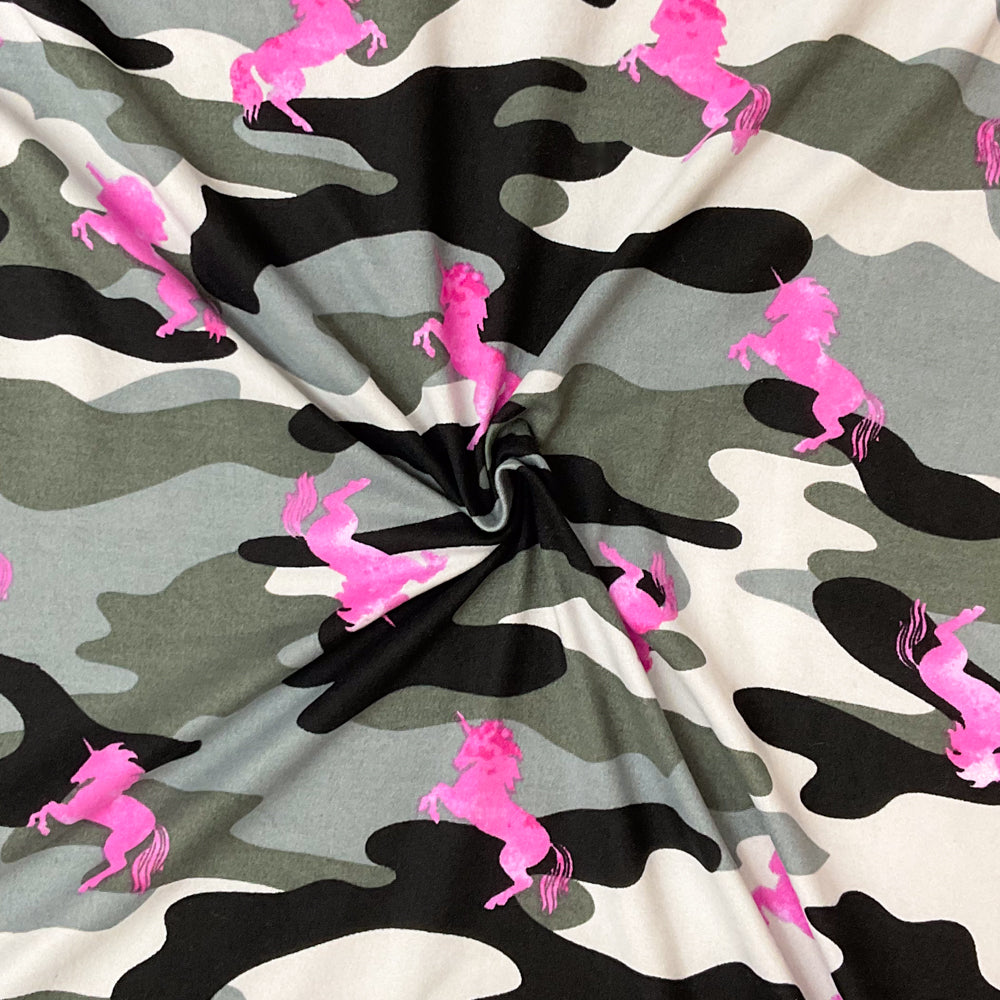 Gray-Multi Poly Stretch Spandex Camo Unicorn Print DB Jersey Knit Fabric