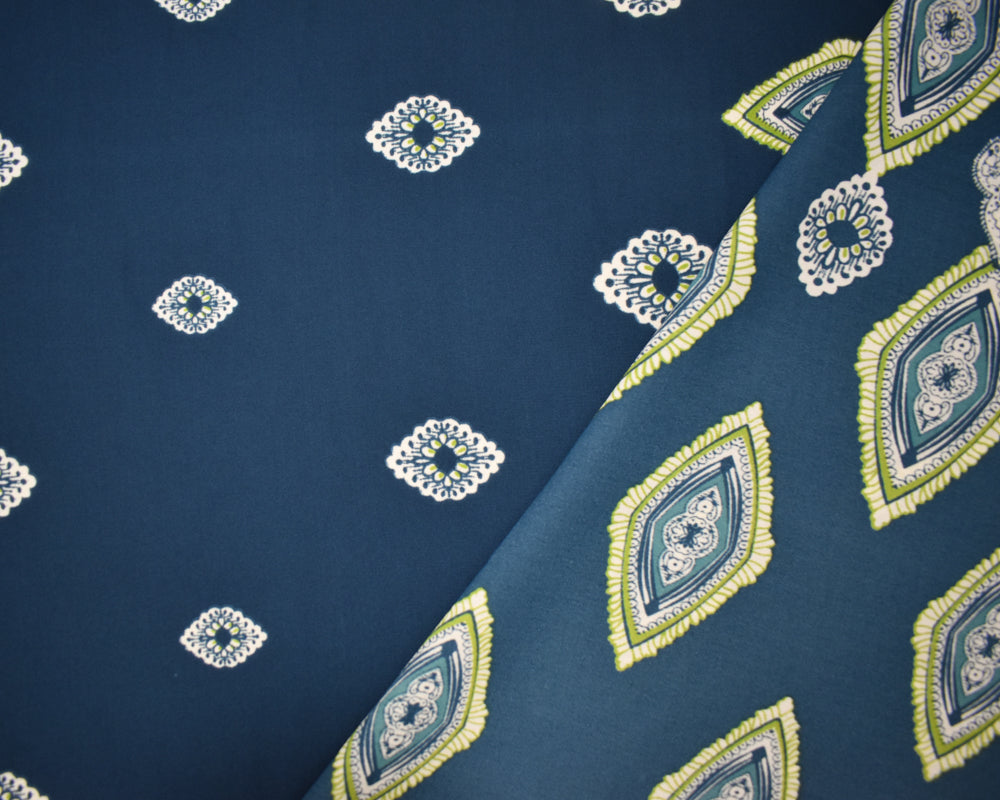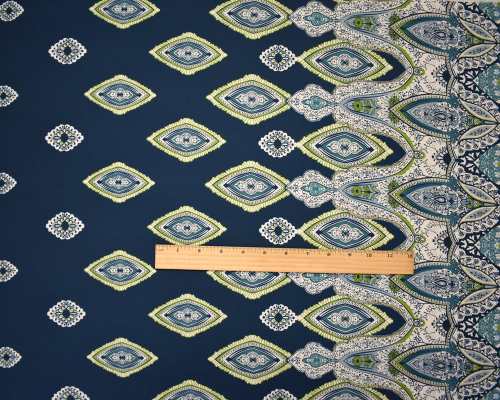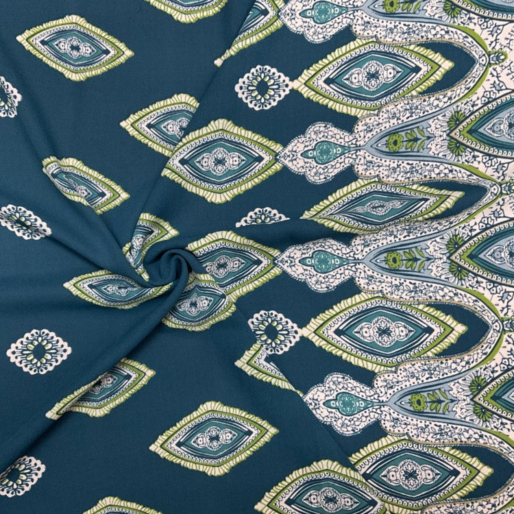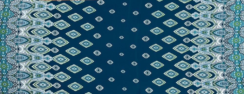 Blue-Green-White Poly Diamide Paisely Border Printed Georgette Woven Fabric