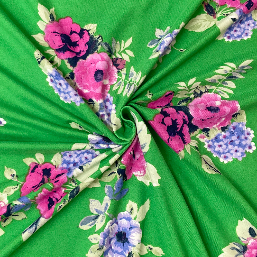 Green-Multi Poly Spandex Stretch Floral Print DB Jersey Knit Fabric