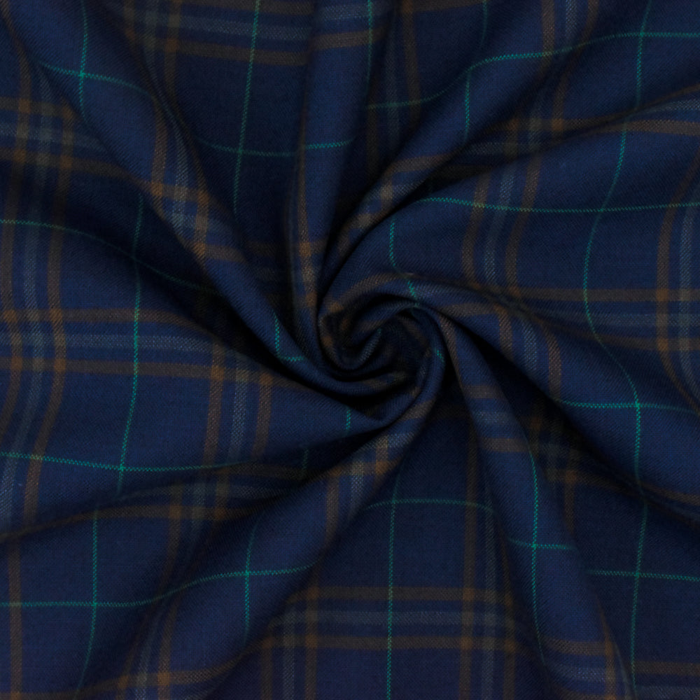 New Navy-Brown-Multi Plaid Wool Polyester Woven Suiting Fabric