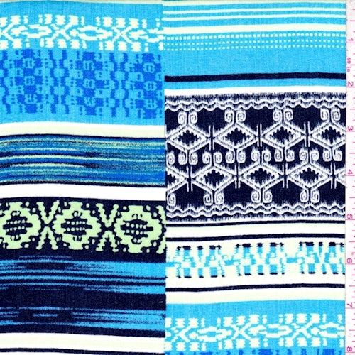 Sky/Pale Green/Navy Deco Brick Crepon Fabric