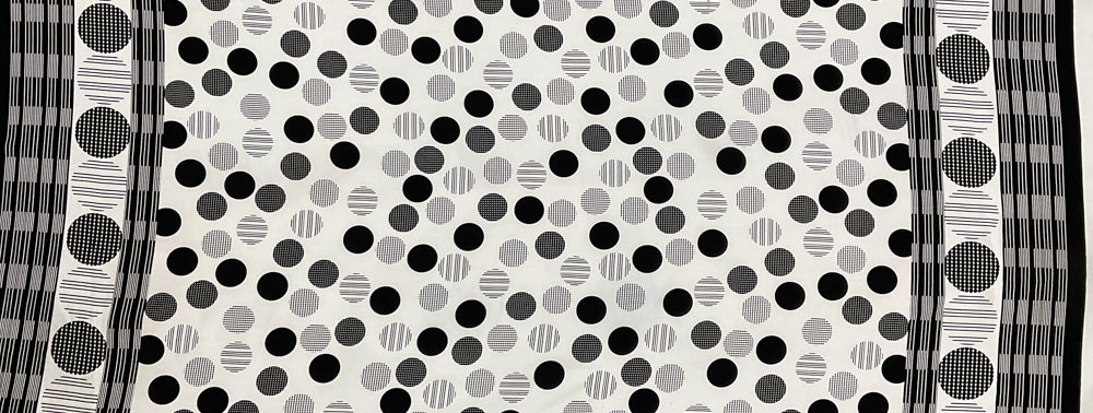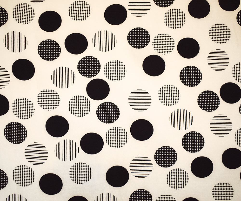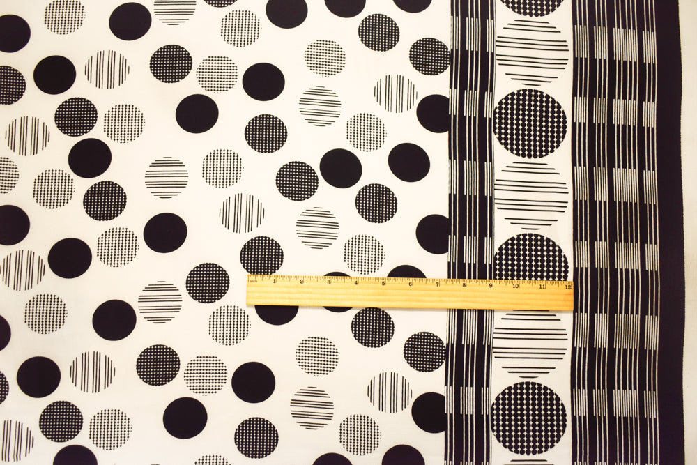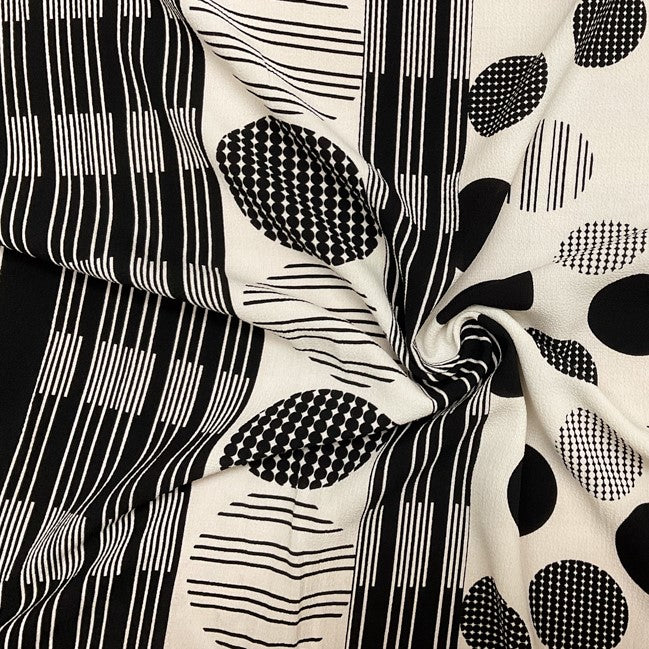 Ivory-Black Poly Circle Abstract Printed Pebble Crepe Woven Fabric
