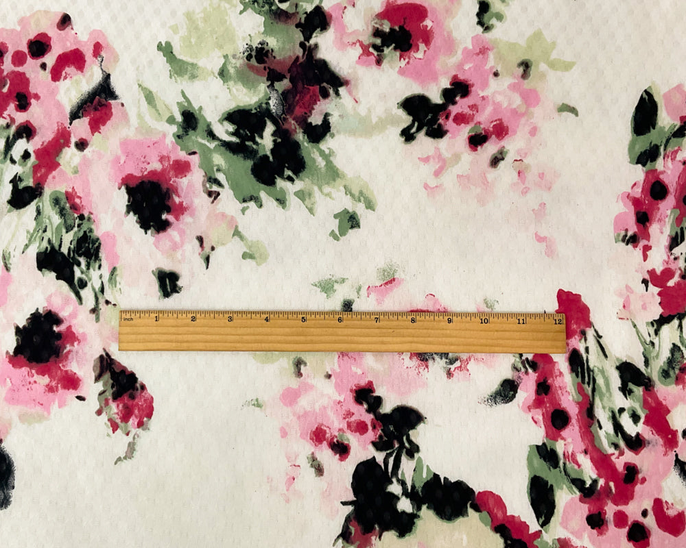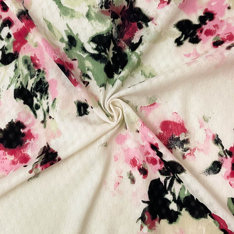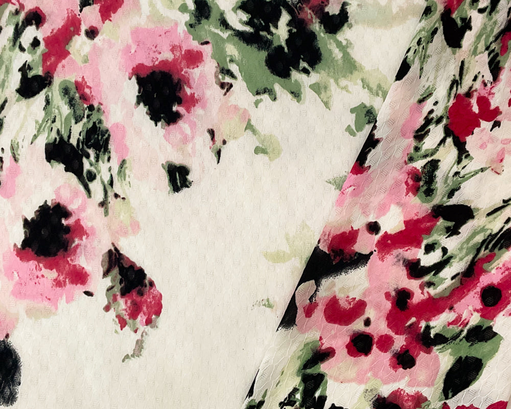Ivory-Pink-Multi Poly Floral Printed Ogee Dobby Chiffon Woven Fabric