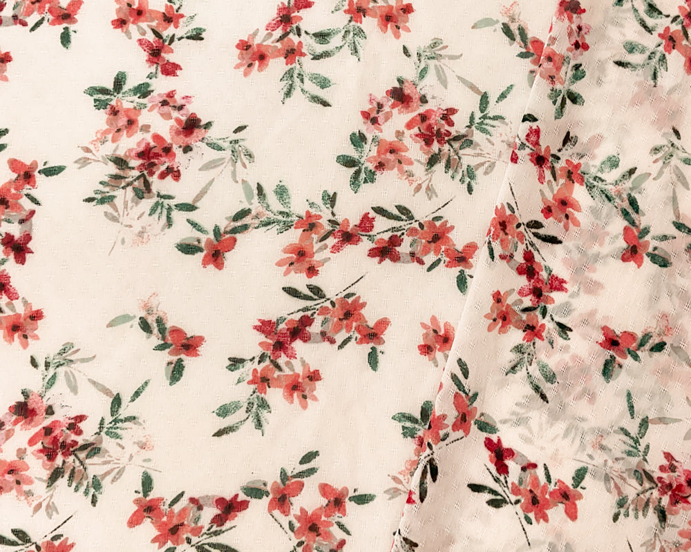 Ivory-Red-Multi Poly Floral Printed Dobby Chiffon Woven Fabric