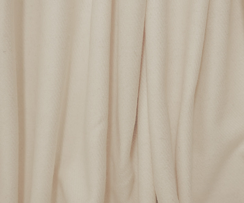 -Ivory Solid Wool Twill Woven Jacketing Fabric