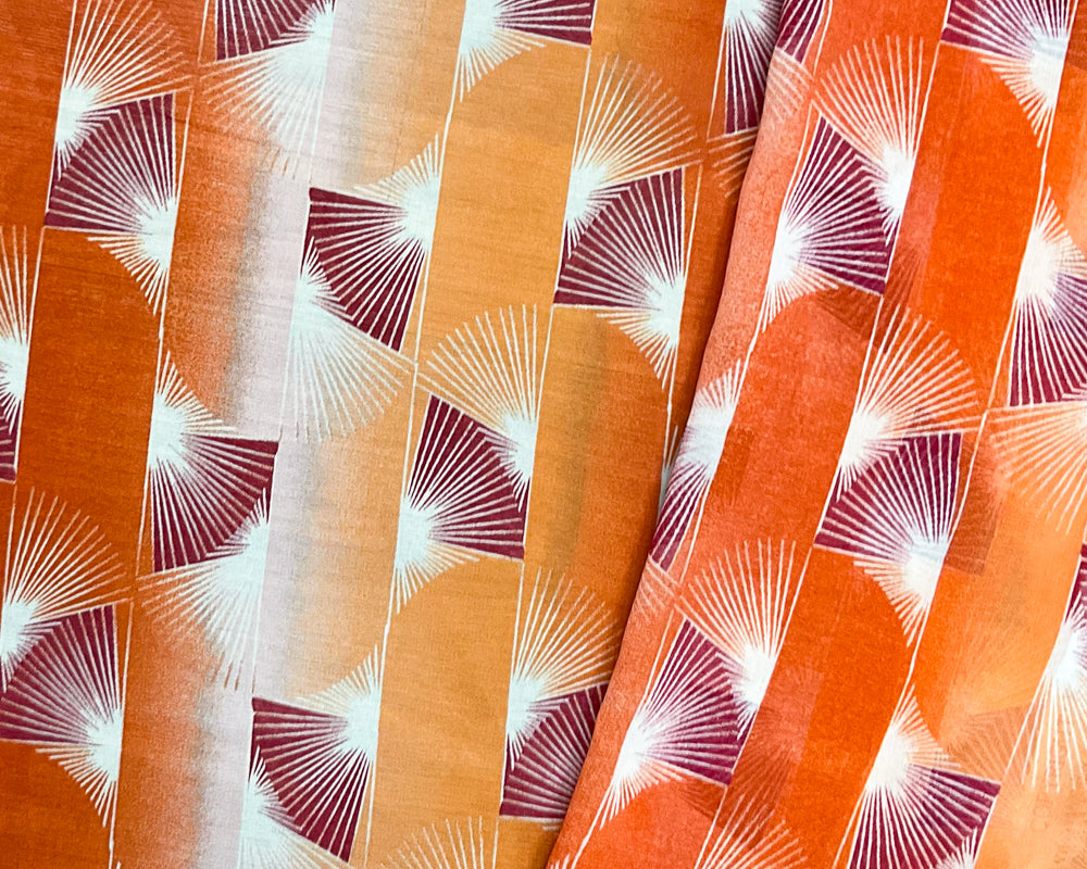 Orange-Red-White Poly Abstract Printed Chiffon Woven Fabric
