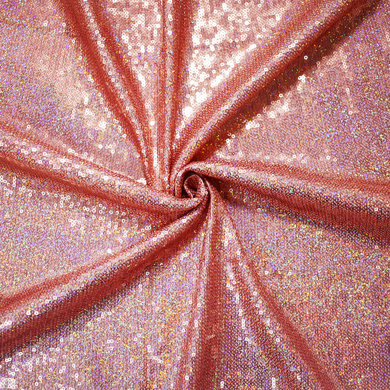 Peach Nylon Polyester Sequined Stretch Knit Fabric
