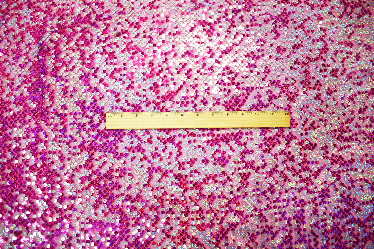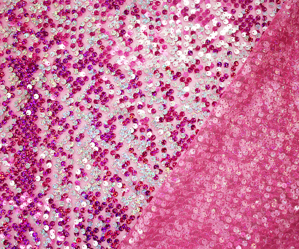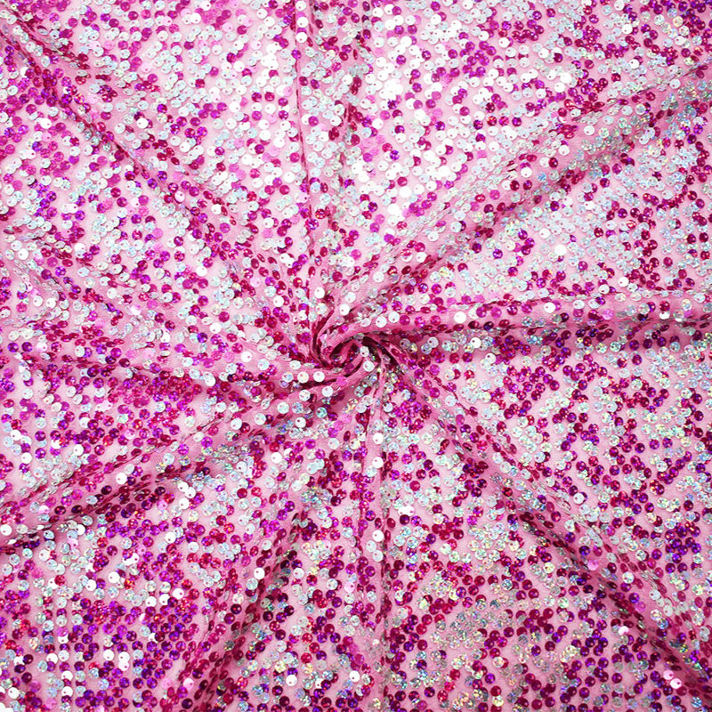 Pink-Magenta-Silver Nylon Sequined Tulle Fabric