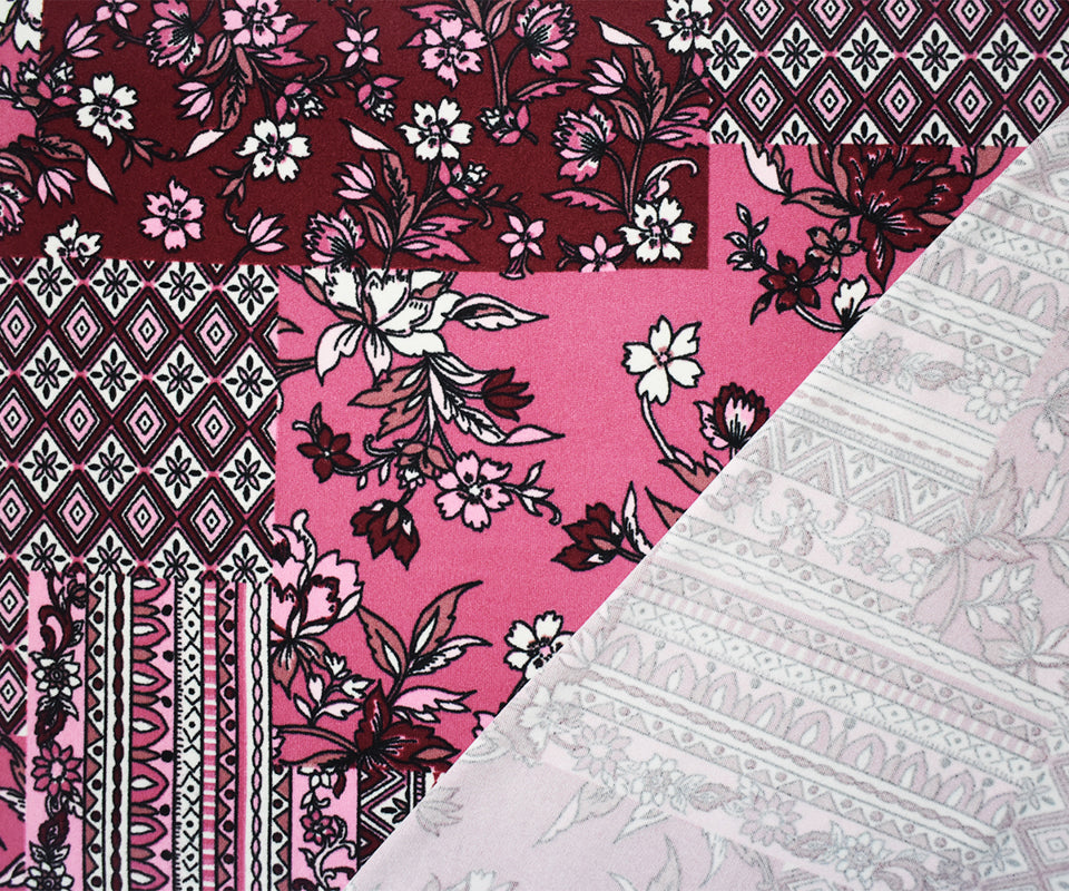 Pink-Multi Poly Stretch Floral Print DB Jersey Knit Fabric